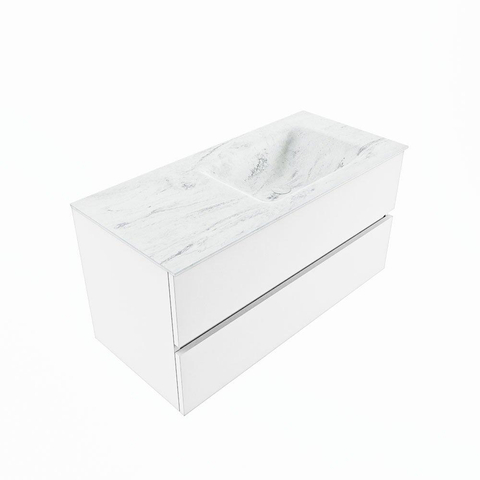 MONDIAZ VICA-DLUX Ensemble meuble de salle de bains - 100cm - sous-meuble talc - 2 tiroirs - lavabo encastré cloud à droite - 1 trou de robinet - version haute 60cm - opalo