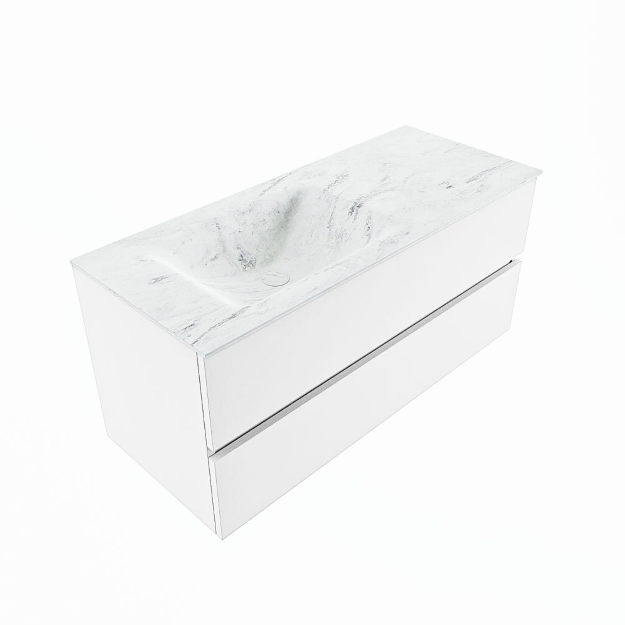 MONDIAZ VICA-DLUX Ensemble meuble de salle de bains - 110cm - meuble bas talc - 2 tiroirs - vasque encastrée cloud gauche - 1 trou de robinet - version haute 60cm - opalo