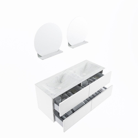 MONDIAZ VICA-DLUX Ensemble meuble de salle de bains - 120cm - meuble bas Talc - 4 tiroirs - lavabo encastré Cloud double - 2 trous de robinet - version hauteur 60cm - Opalo