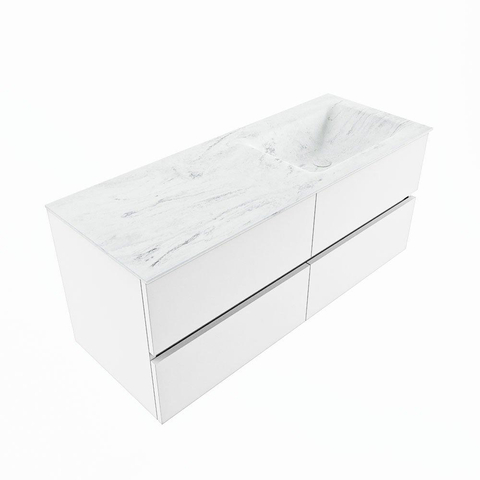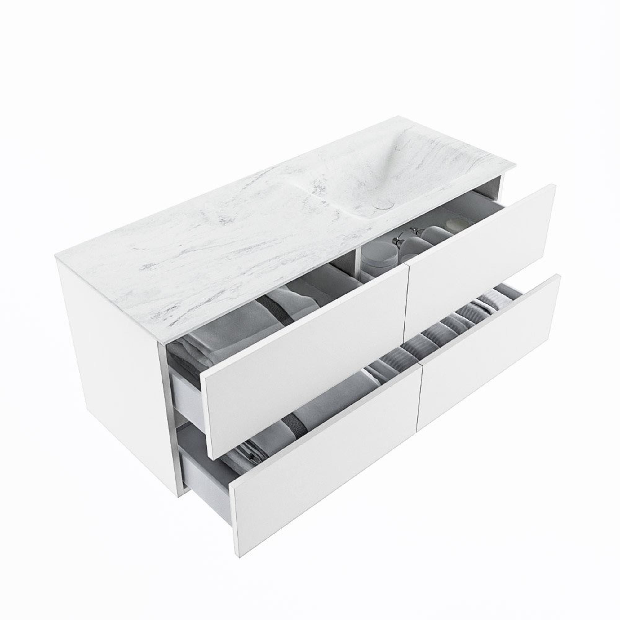 MONDIAZ VICA-DLUX Ensemble meuble de salle de bains - 120cm - meuble bas talc - 4 tiroirs - lavabo encastré cloud à droite - sans trous de robinet - version haute 60cm - opalo