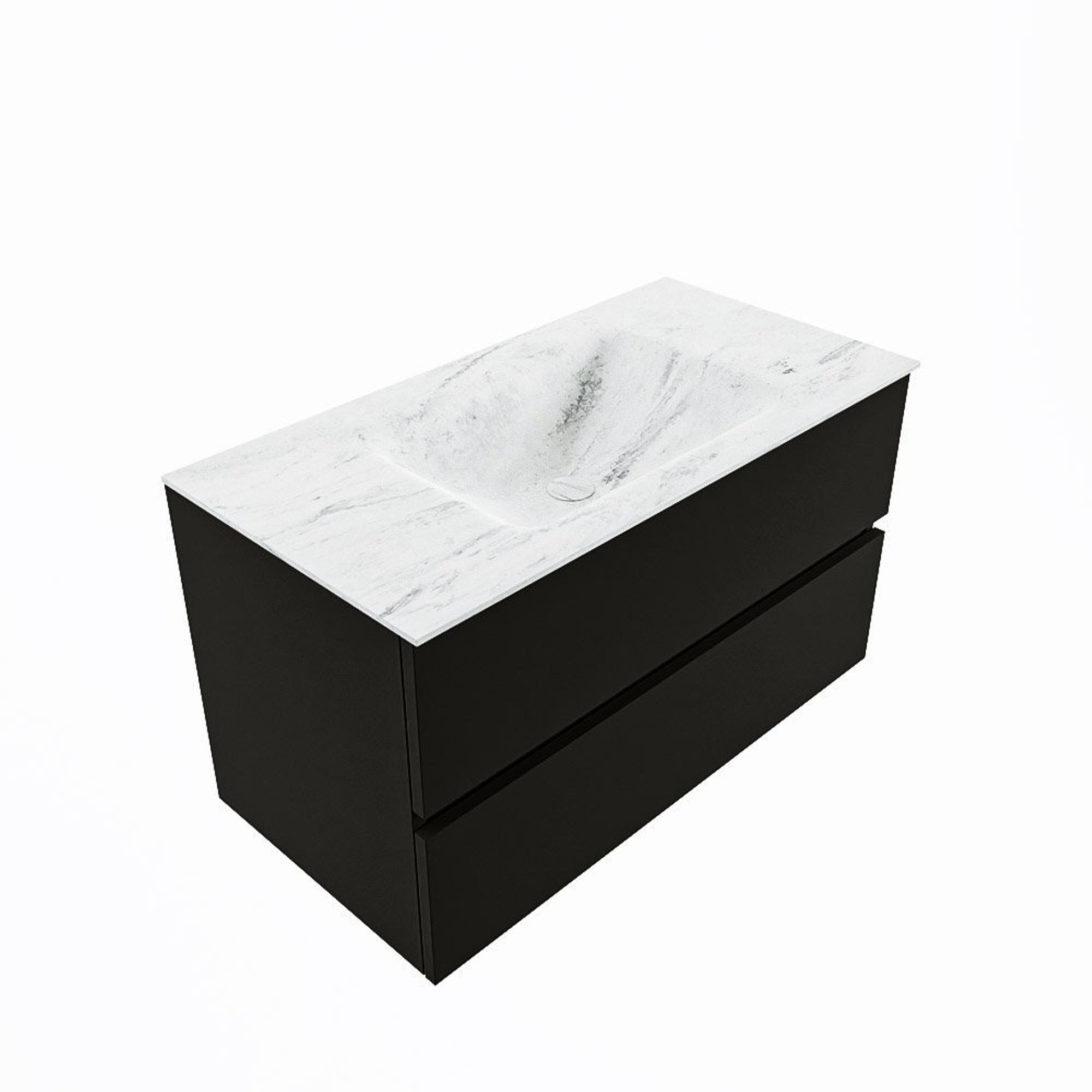MONDIAZ VICA-DLUX Ensemble meuble de salle de bains - 90cm - meuble bas Urban - 2 tiroirs - lavabo encastré Cloud central - sans trous de robinet - version haute 60cm - Opalo