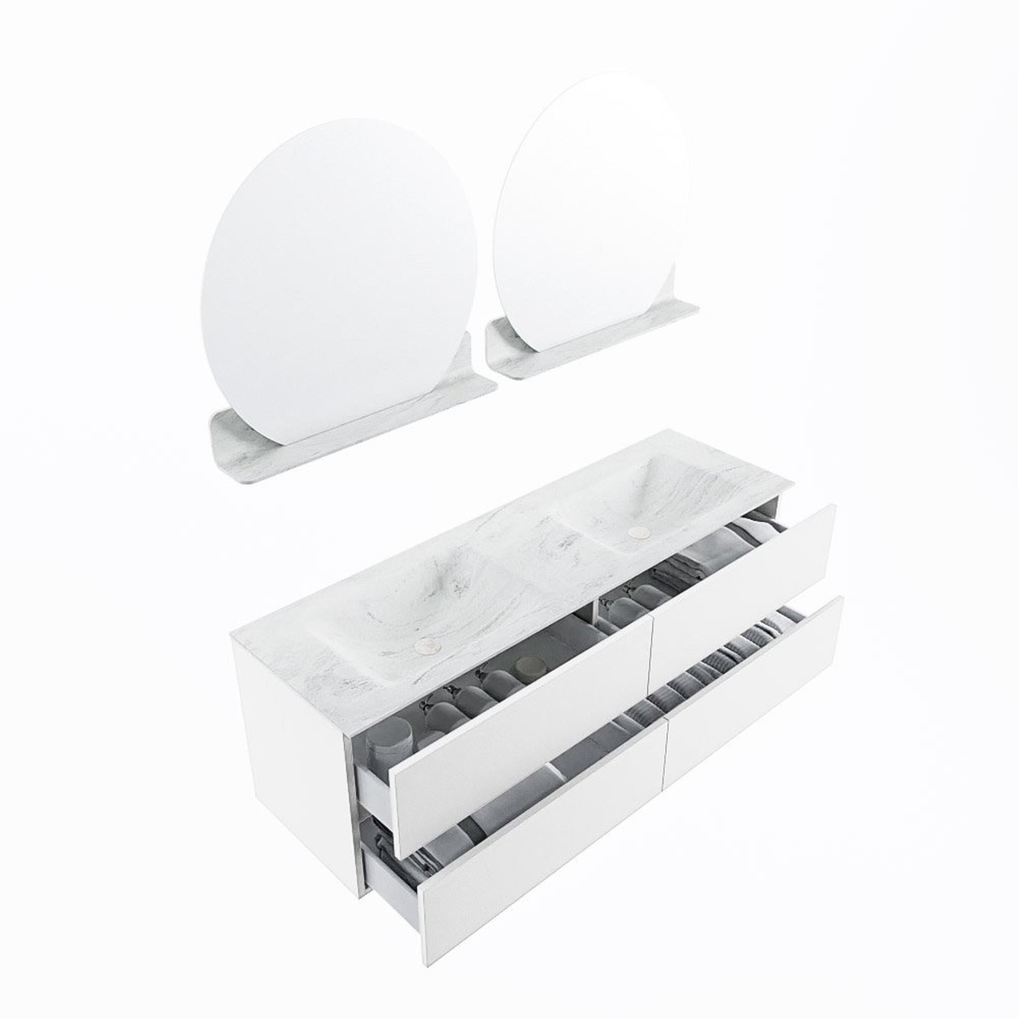 MONDIAZ VICA-DLUX Ensemble meuble de salle de bains - 150cm - meuble bas talc - 4 tiroirs - lavabo encastré cloud double - sans trous de robinet - version haute 60cm - opalo