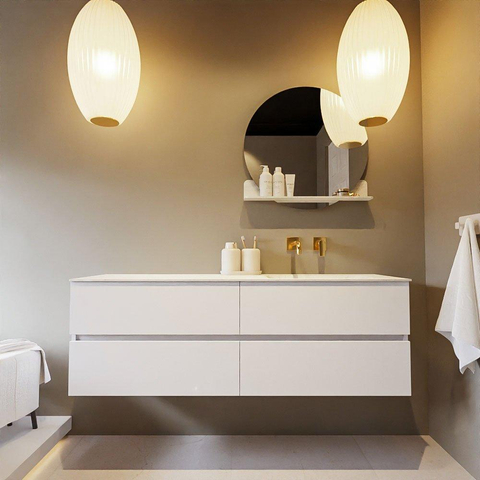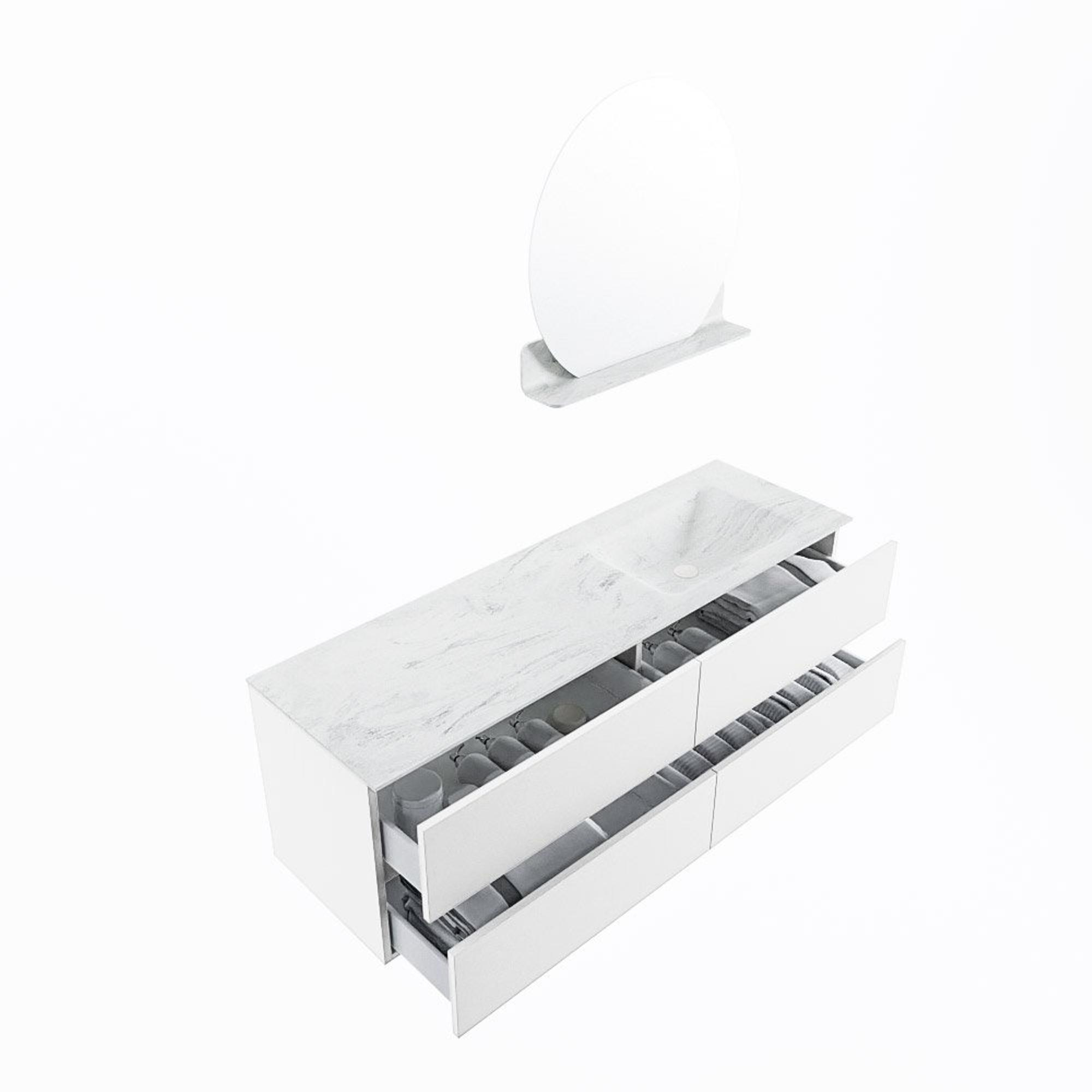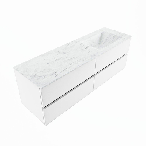 MONDIAZ VICA-DLUX Ensemble meuble de salle de bains - 150cm - meuble bas talc - 4 tiroirs - lavabo encastré cloud à droite - sans trous de robinetterie - version haute 60cm - opalo