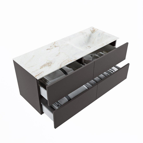 MONDIAZ VICA-DLUX Ensemble meuble de salle de bains - 120cm - meuble bas dark grey - 4 tiroirs - lavabo encastré cloud à droite - sans trous de robinet - version haute 60cm - frape