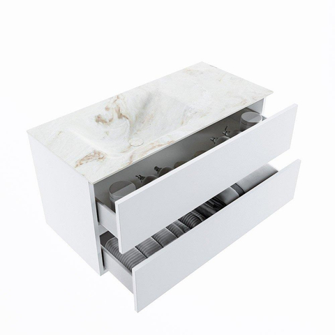 MONDIAZ VICA-DLUX Ensemble meuble de salle de bains - 100cm - sous-meuble talc - 2 tiroirs - vasque encastrée cloud gauche - 1 trou de robinet - version haute 60cm - frape