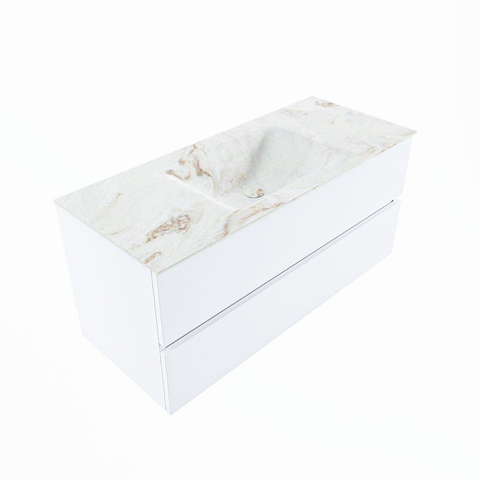 MONDIAZ VICA-DLUX Ensemble meuble de salle de bains - 110cm - sous-meuble talc - 2 tiroirs - lavabo encastré cloud au milieu - 1 trou de robinet - version haute 60cm - frape