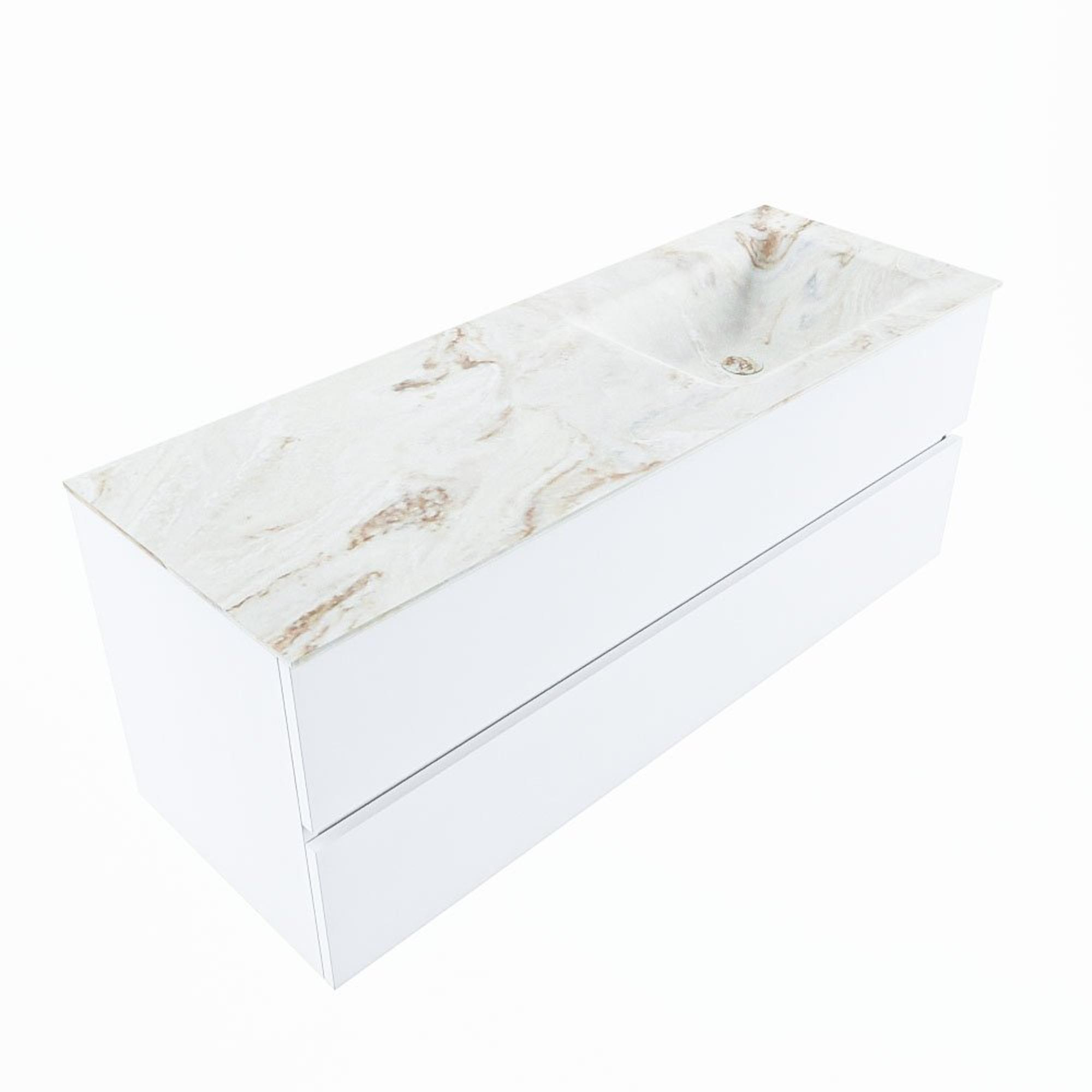 MONDIAZ VICA-DLUX Ensemble meuble de salle de bains - 130cm - meuble bas talc - 2 tiroirs - lavabo encastré cloud à droite - sans trous de robinet - version haute 60cm - frape