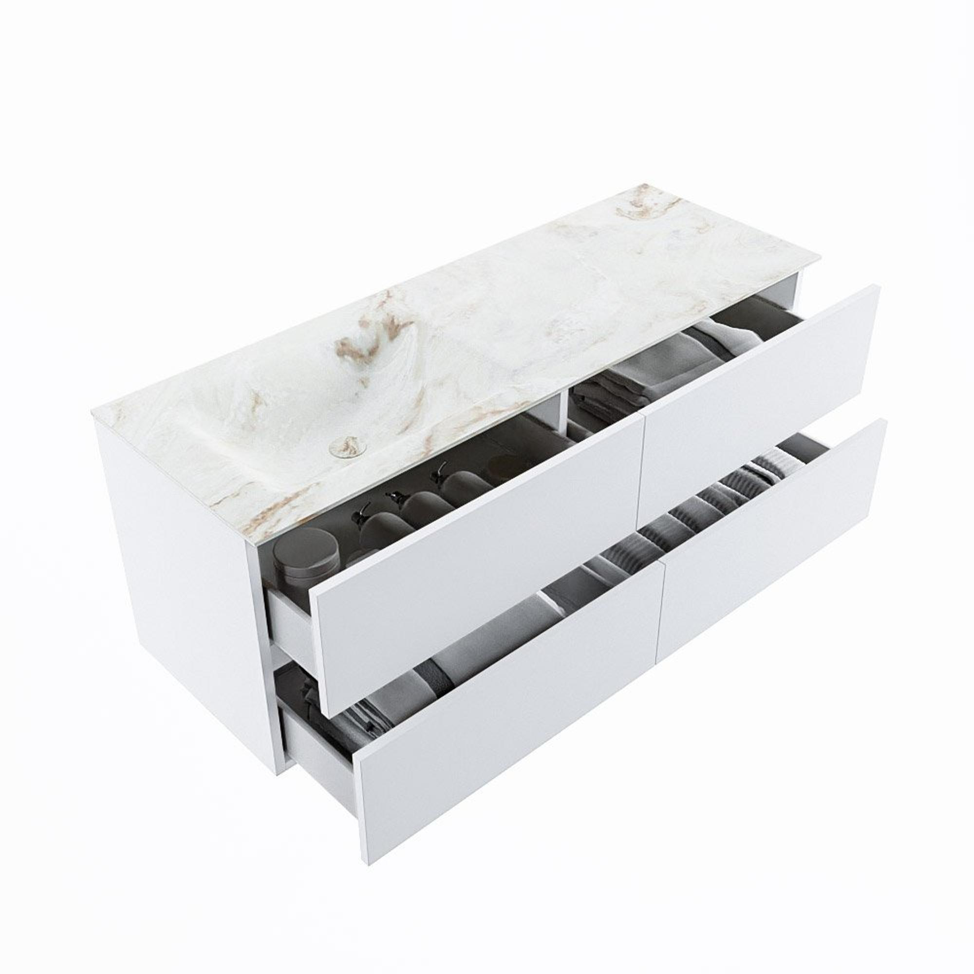 MONDIAZ VICA-DLUX Ensemble meuble de salle de bains - 130cm - meuble bas talc - 4 tiroirs - lavabo encastré cloud à gauche - 1 trou de robinet - version haute 60cm - frape