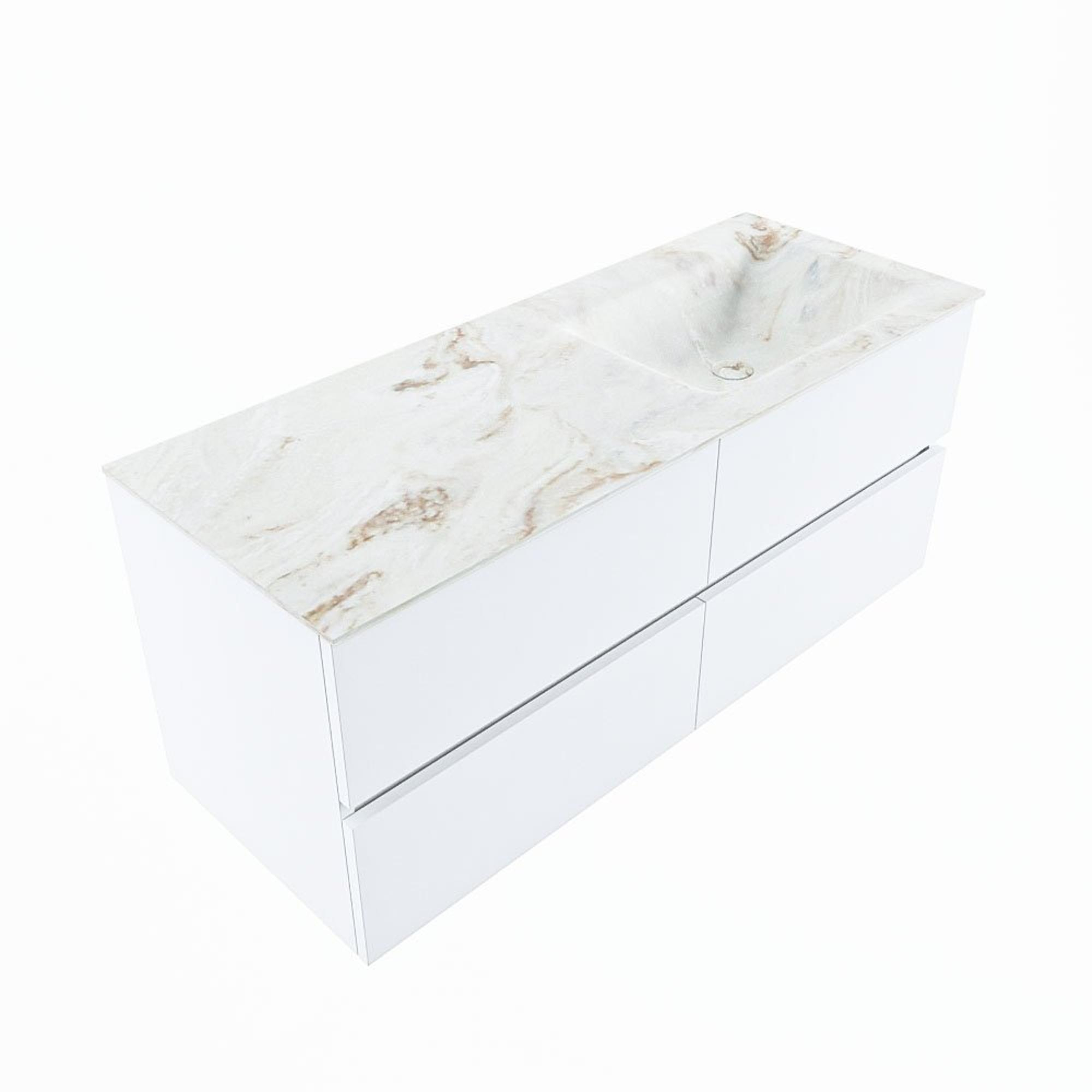 MONDIAZ VICA-DLUX Ensemble meuble de salle de bains - 120cm - meuble bas talc - 4 tiroirs - lavabo encastré cloud à droite - 1 trou de robinet - version haute 60cm - frape