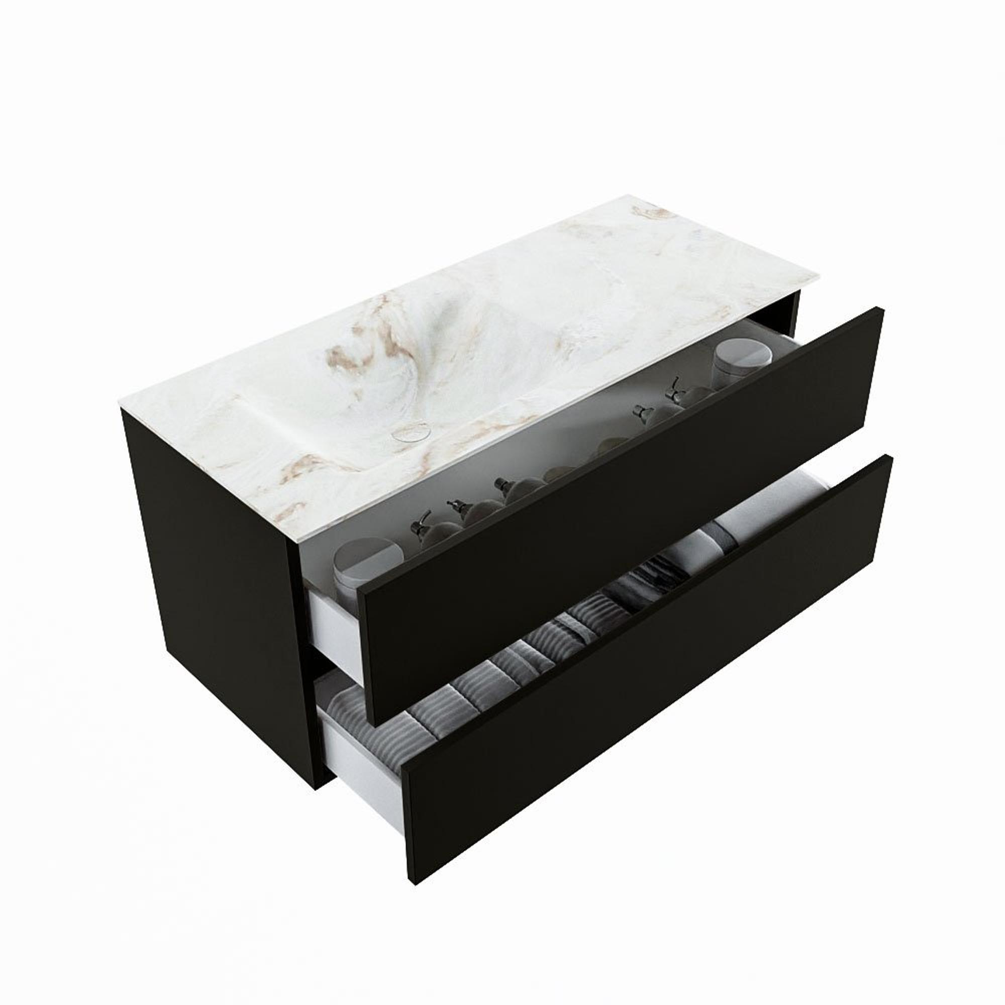 MONDIAZ VICA-DLUX Ensemble meuble de salle de bains - 110cm - meuble bas Urban - 2 tiroirs - lavabo encastré Cloud gauche - sans trous de robinet - version haute 60cm - Frappe