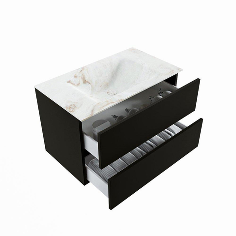 MONDIAZ VICA-DLUX Ensemble meuble de salle de bains - 80cm - meuble bas Urban - 2 tiroirs - vasque encastrée Cloud centrale - sans trous de robinet - version haute 60cm - Frappe