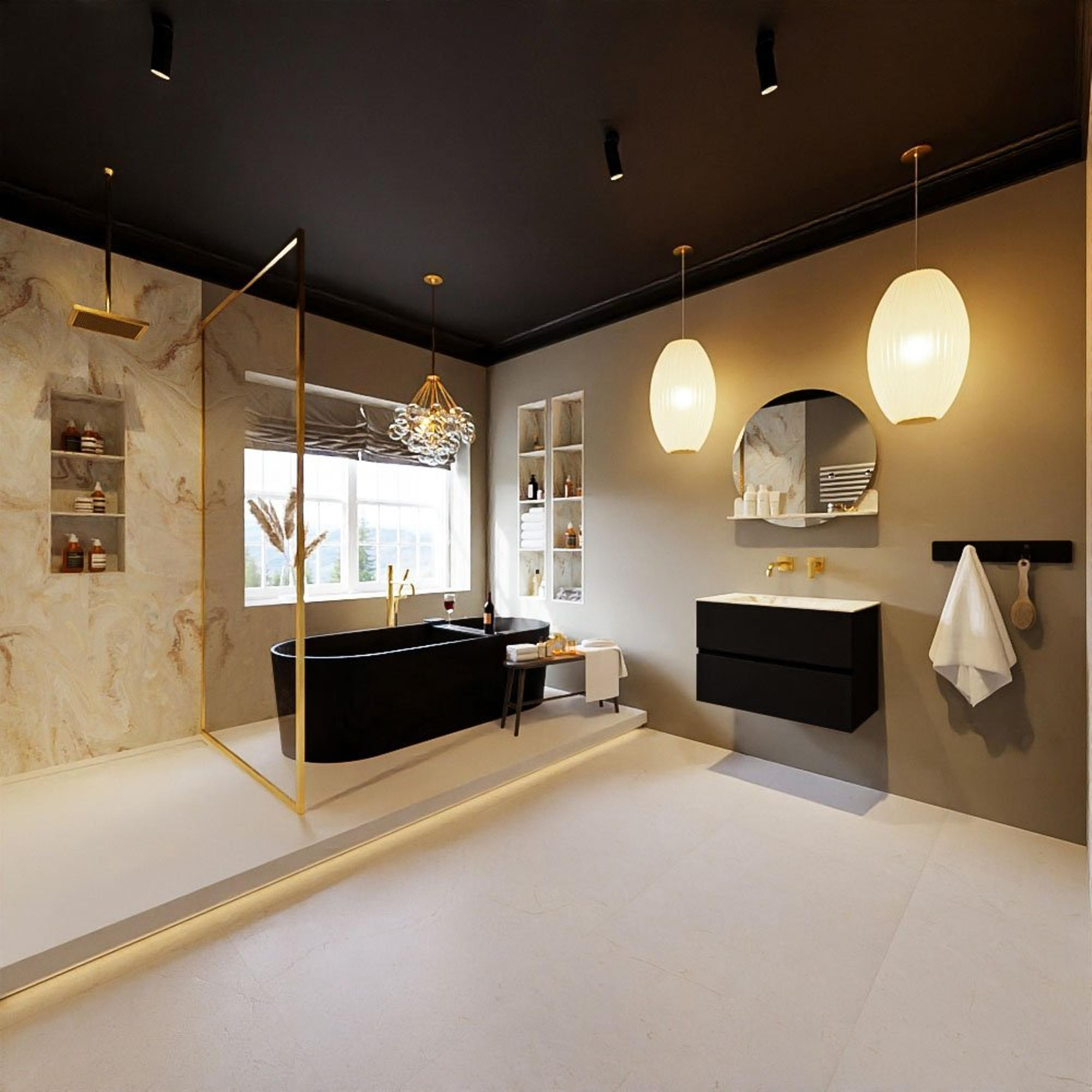 - Le meuble ne doit pas être placé directement à côté ou en face d'une douche avec rideau de douche et/ou sans paroi de douche.