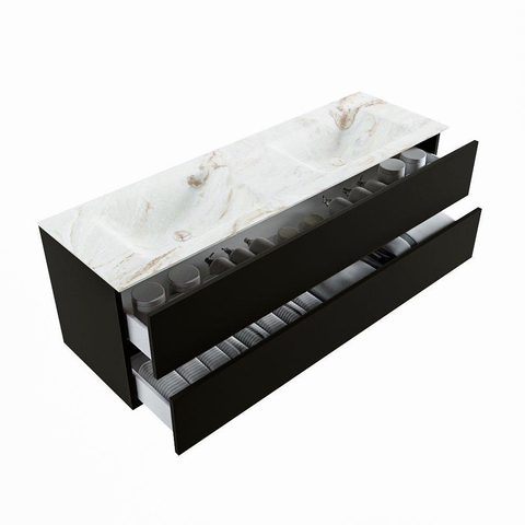MONDIAZ VICA-DLUX Ensemble meuble de salle de bains - 150cm - meuble bas Urban - 2 tiroirs - lavabo encastré Cloud double - 2 trous de robinet - version haute 60cm - Frappe