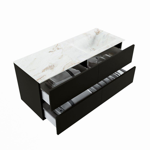 MONDIAZ VICA-DLUX Ensemble meuble de salle de bains - 120cm - meuble bas urban - 4 tiroirs - lavabo encastré cloud à droite - 1 trou de robinet - version haute 60cm - frape