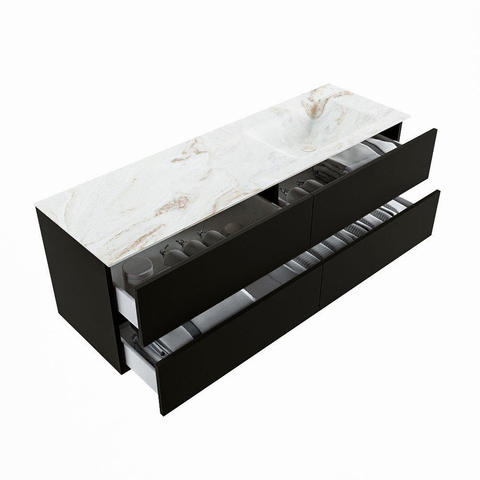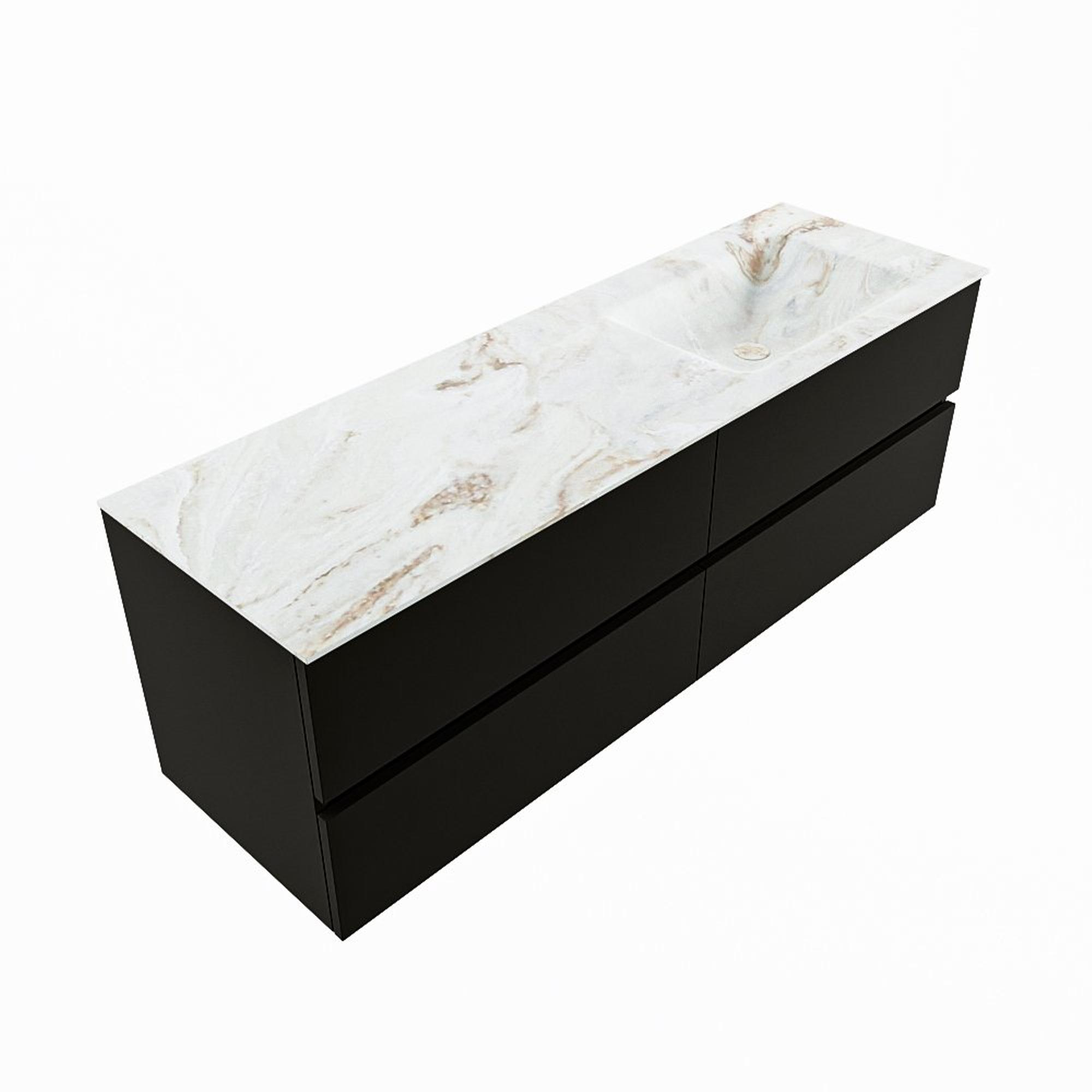 MONDIAZ VICA-DLUX Ensemble meuble de salle de bains - 150cm - meuble bas Urban - 4 tiroirs - lavabo encastré Cloud à droite - sans trous de robinet - version hauteur 60cm - Frappe