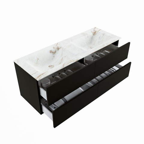 MONDIAZ VICA-DLUX Ensemble meuble de salle de bains - 130cm - meuble bas urban - 4 tiroirs - lavabo encastré cloud double - sans trous de robinet - version haute 60cm - frape