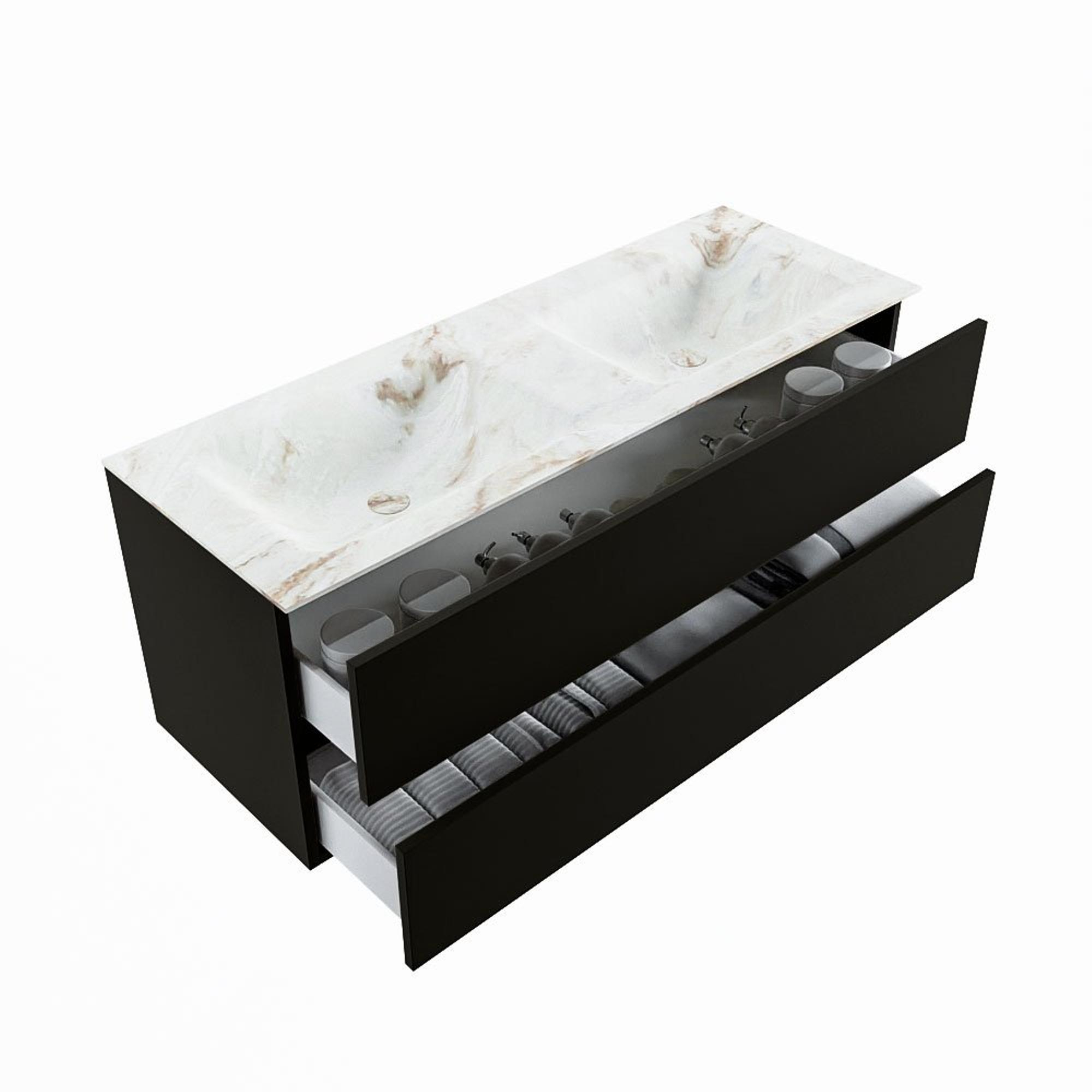 MONDIAZ VICA-DLUX Ensemble meuble de salle de bains - 130cm - meuble sous-vasque urban - 2 tiroirs - lavabo encastré cloud double - 2 trous de robinet - version haute 60cm - frape