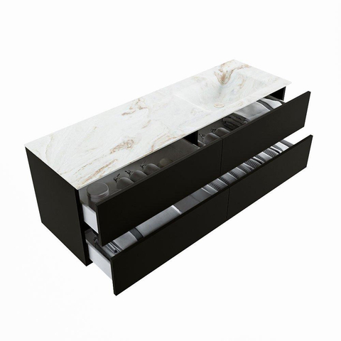 MONDIAZ VICA-DLUX Ensemble meuble de salle de bains - 150cm - meuble bas Urban - 4 tiroirs - lavabo encastré Cloud à droite - 1 trou de robinet - version haute 60cm - Frappe