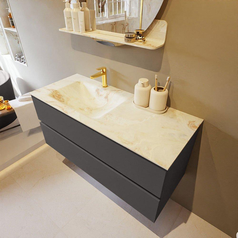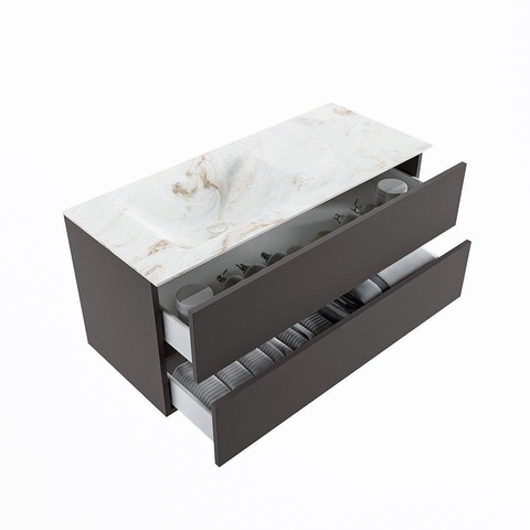 MONDIAZ VICA-DLUX Ensemble meuble de salle de bains - 110cm - meuble sous-vasque dark grey - 2 tiroirs - lavabo encastré cloud à gauche - 1 trou de robinet - version haute 60cm - frape