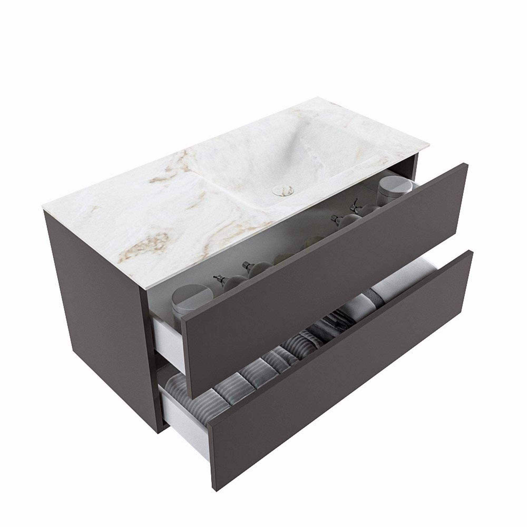 MONDIAZ VICA-DLUX Ensemble meuble de salle de bains - 100cm - meuble bas dark grey - 2 tiroirs - lavabo encastré cloud à droite - sans trous de robinetterie - version haute 60cm - frape