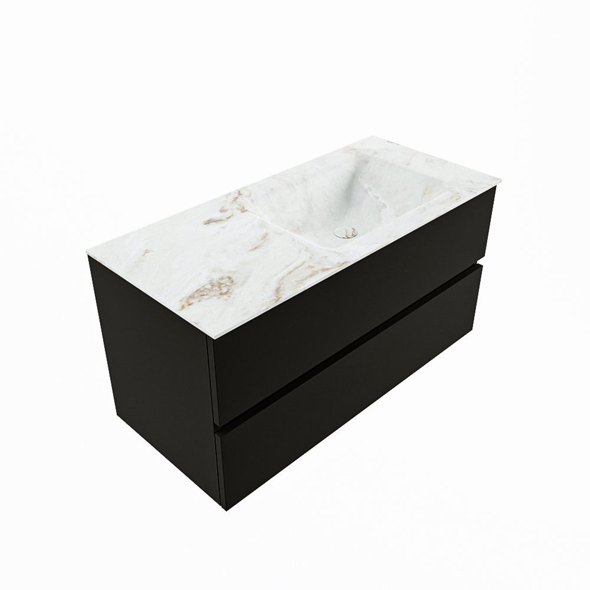 MONDIAZ VICA-DLUX Ensemble meuble de salle de bains - 100cm - meuble bas urban - 2 tiroirs - lavabo encastré cloud à droite - 1 trou de robinet - version haute 60cm - frape