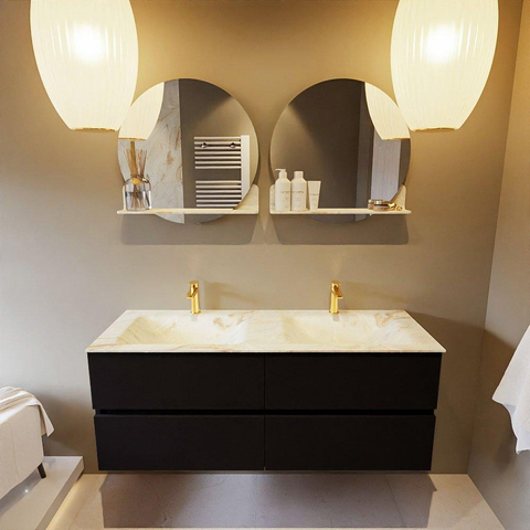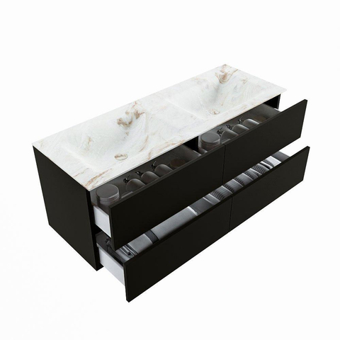 MONDIAZ VICA-DLUX Ensemble meuble de salle de bains - 130cm - sous-meuble urban - 4 tiroirs - lavabo encastré cloud double - 2 trous de robinet - version haute 60cm - frape