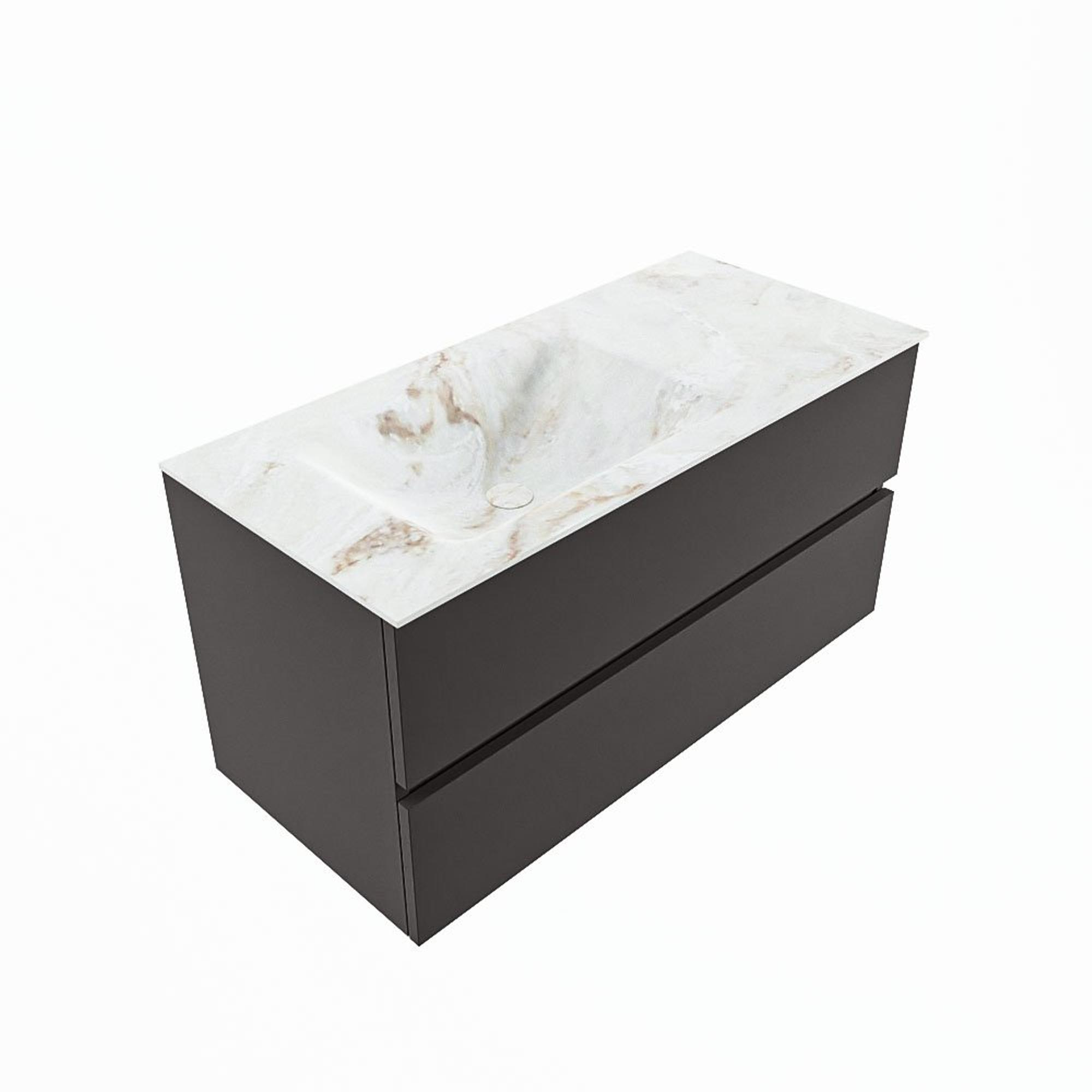 MONDIAZ VICA-DLUX Ensemble meuble de salle de bains - 100cm - sous-meuble dark grey - 2 tiroirs - lavabo encastré cloud à gauche - sans trous de robinet - version haute 60cm - frape