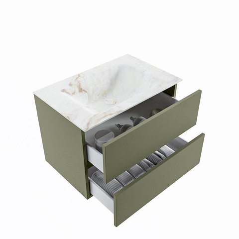 MONDIAZ VICA-DLUX Ensemble meuble de salle de bains - 70cm - meuble sous-vasque army - 2 tiroirs - vasque encastrée cloud au centre - sans trous de robinet - version haute 60cm - frape