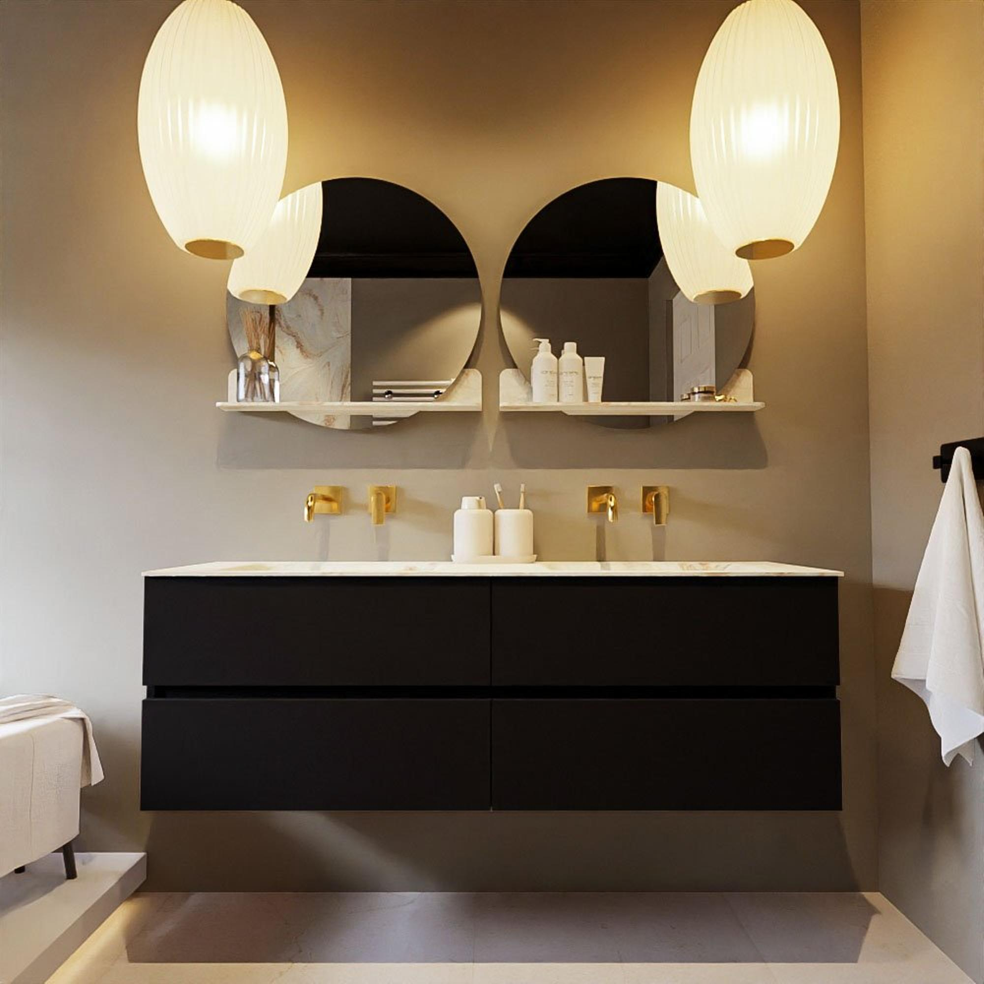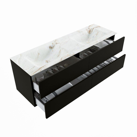 MONDIAZ VICA-DLUX Ensemble meuble de salle de bains - 150cm - meuble bas Urban - 4 tiroirs - vasque encastrée Cloud double - sans trous de robinet - version haute 60cm - Frappe