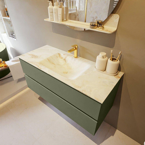 MONDIAZ VICA-DLUX Ensemble meuble de salle de bains - 110cm - meuble bas army - 2 tiroirs - lavabo encastré cloud centré - 1 trou de robinet - version haute 60cm - frape