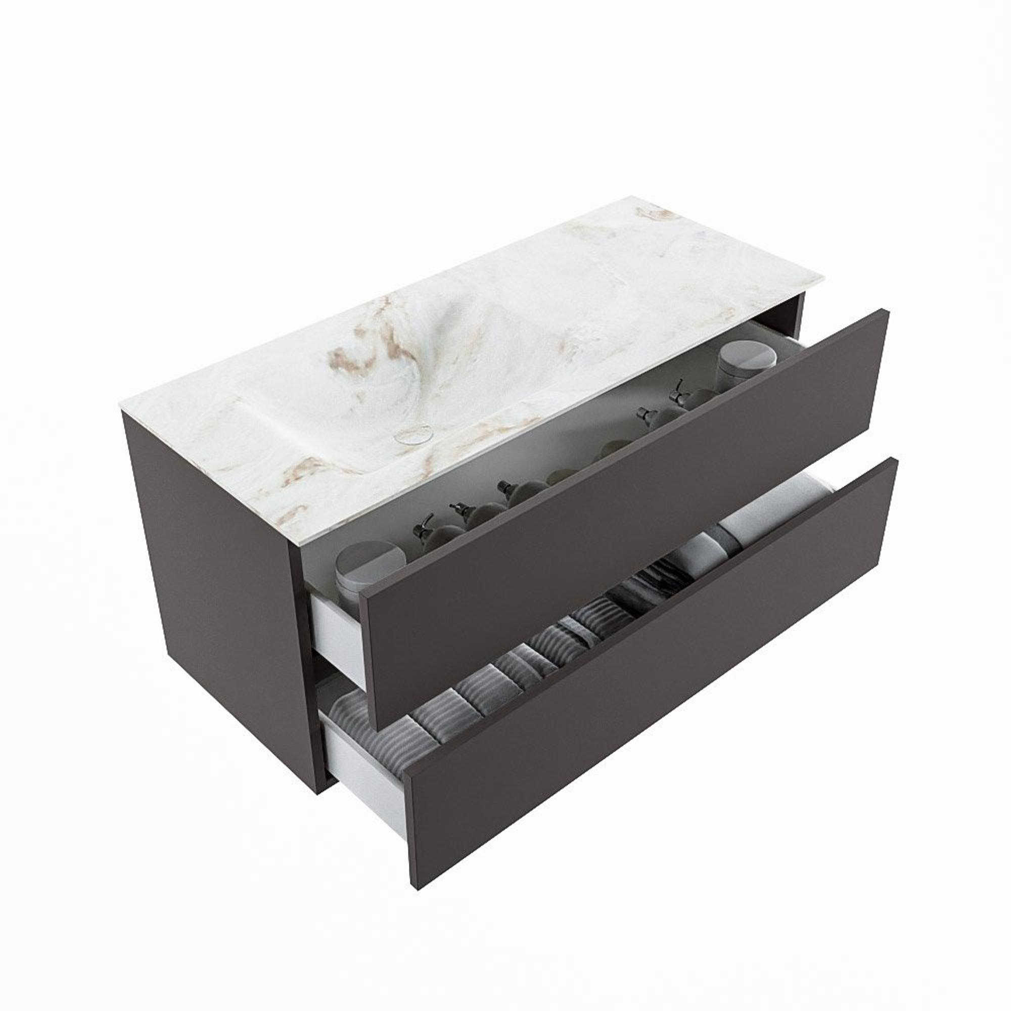 MONDIAZ VICA-DLUX Ensemble meuble de salle de bains - 110cm - meuble bas dark grey - 2 tiroirs - lavabo encastré cloud gauche - sans trous de robinet - version haute 60cm - frape