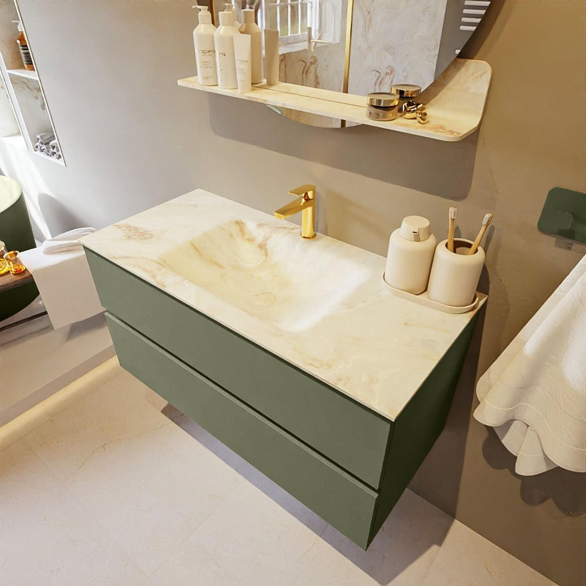 MONDIAZ VICA-DLUX Ensemble meuble de salle de bains - 100cm - meuble bas army - 2 tiroirs - lavabo encastré cloud central - 1 trou de robinet - version haute 60cm - frape