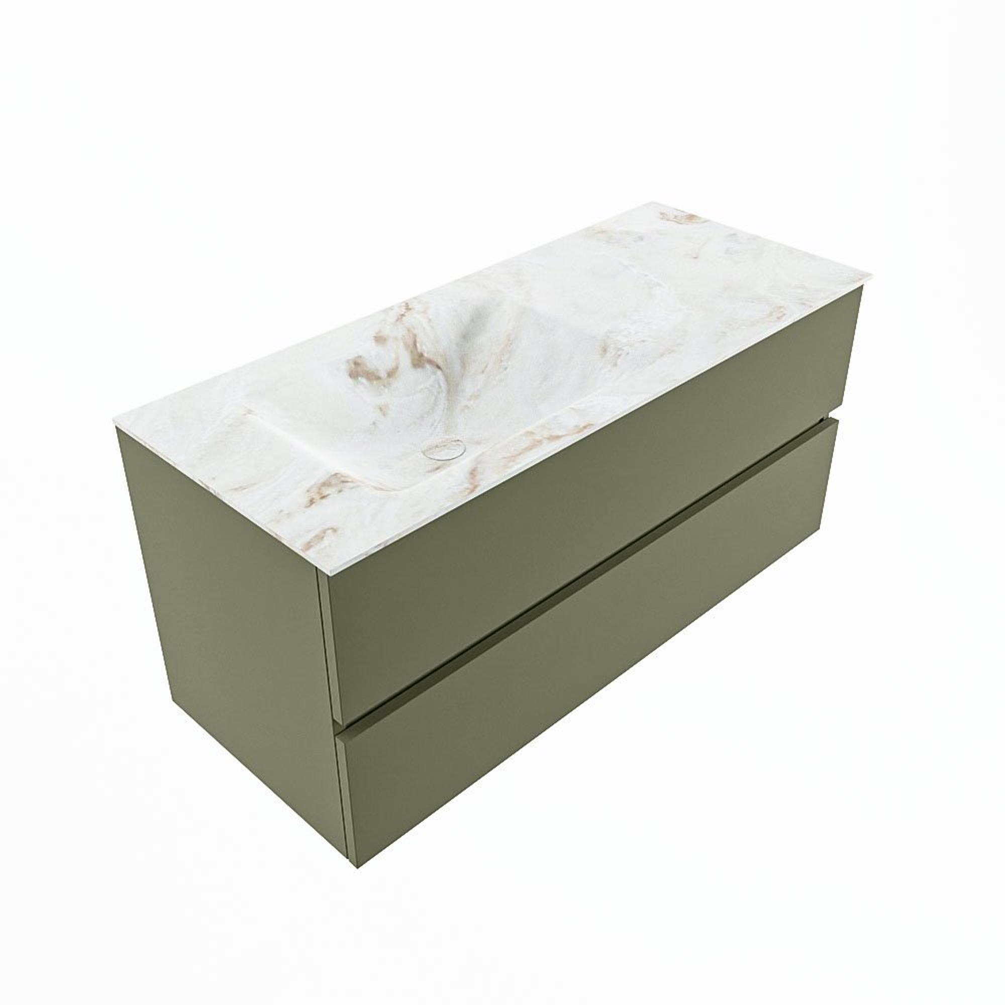 MONDIAZ VICA-DLUX Ensemble meuble de salle de bains - 110cm - meuble sous-vasque army - 2 tiroirs - lavabo encastré cloud à gauche - sans trous de robinet - version haute 60cm - frape