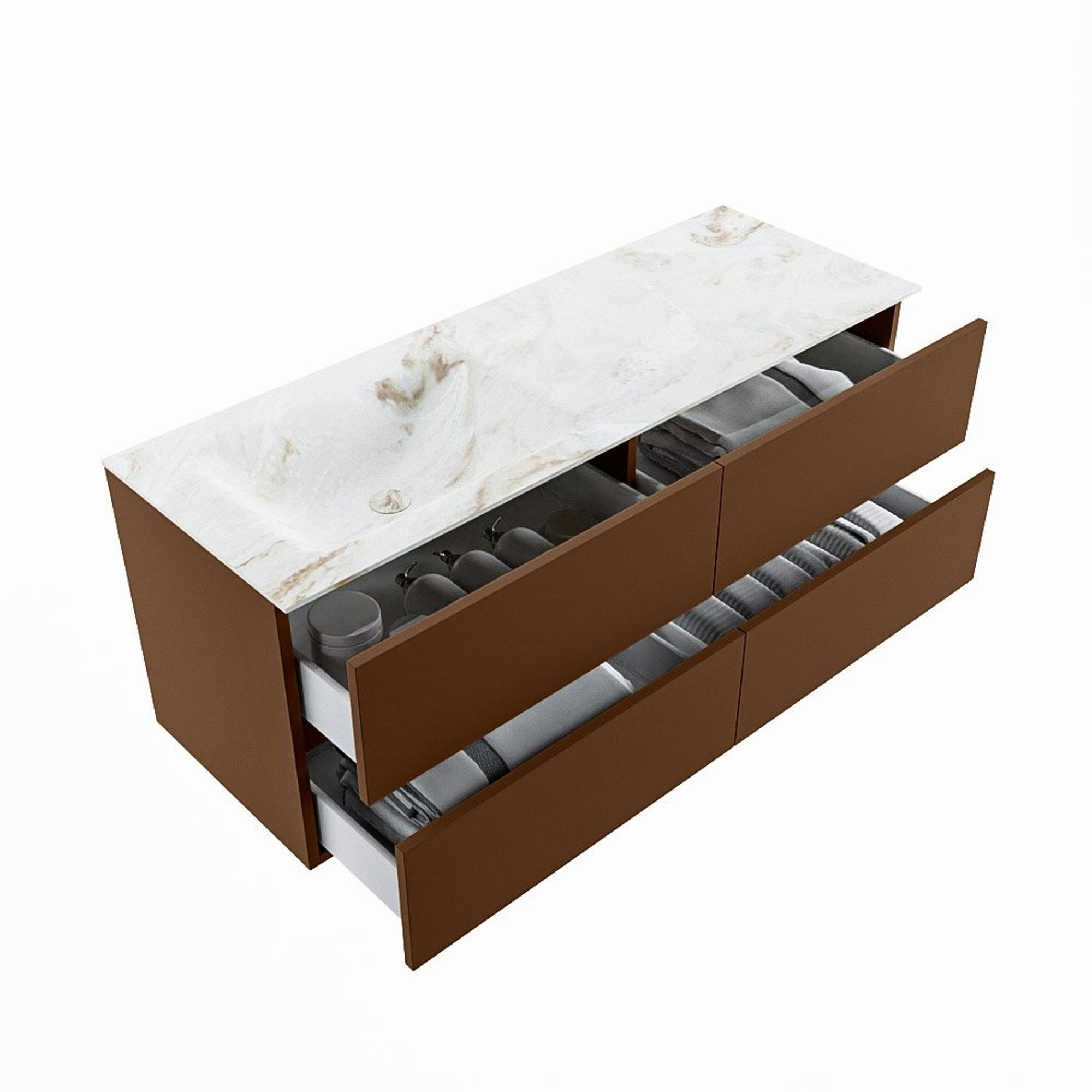 MONDIAZ VICA-DLUX Ensemble meuble de salle de bains - 130cm - meuble bas rust - 4 tiroirs - lavabo encastré cloud gauche - sans trous de robinet - version hauteur 60cm - frape