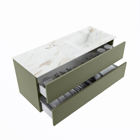 MONDIAZ VICA-DLUX Ensemble meuble de salle de bains - 120cm - meuble bas army - 2 tiroirs - lavabo encastré cloud à droite - 1 trou de robinet - version haute 60cm - frape