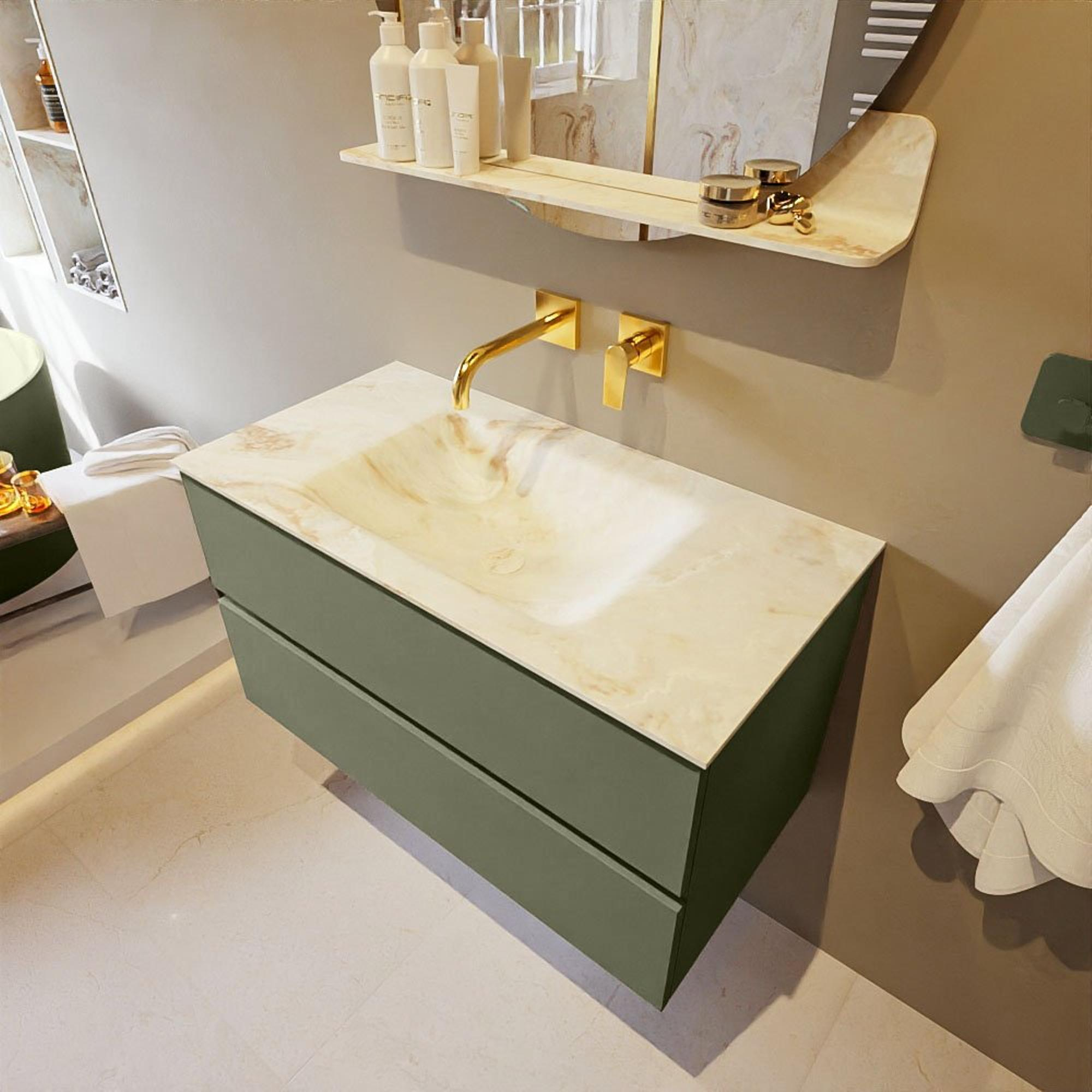 MONDIAZ VICA-DLUX Ensemble meuble de salle de bains - 90cm - meuble bas army - 2 tiroirs - vasque encastrée cloud au centre - sans trous de robinet - version haute 60cm - frape