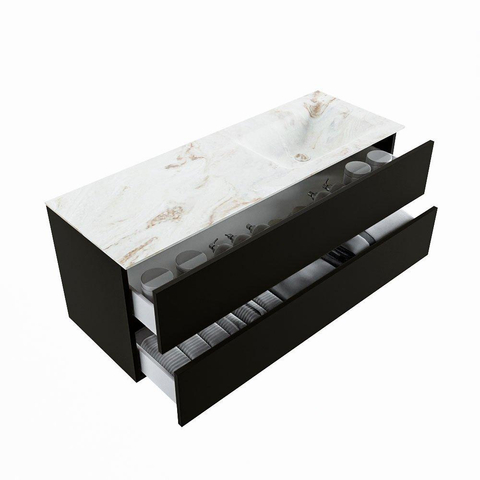 MONDIAZ VICA-DLUX Ensemble meuble de salle de bains - 130cm - meuble bas Urban - 2 tiroirs - vasque encastrée Cloud à droite - 1 trou de robinet - version haute 60cm - Frappe