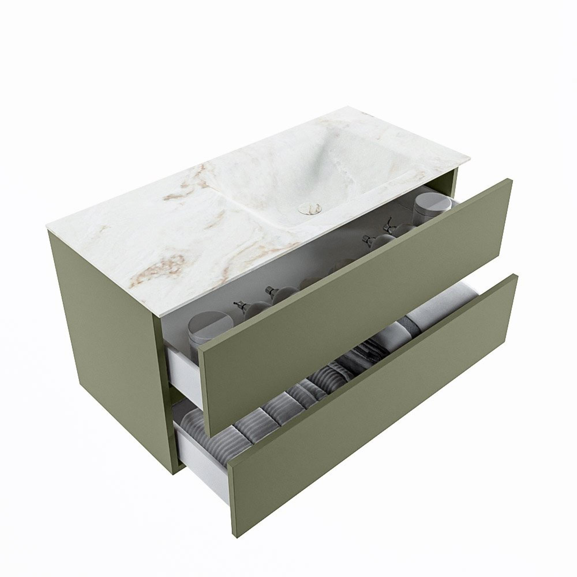 MONDIAZ VICA-DLUX Ensemble meuble de salle de bains - 100cm - meuble bas army - 2 tiroirs - lavabo encastré cloud à droite - 1 trou de robinet - version haute 60cm - frape