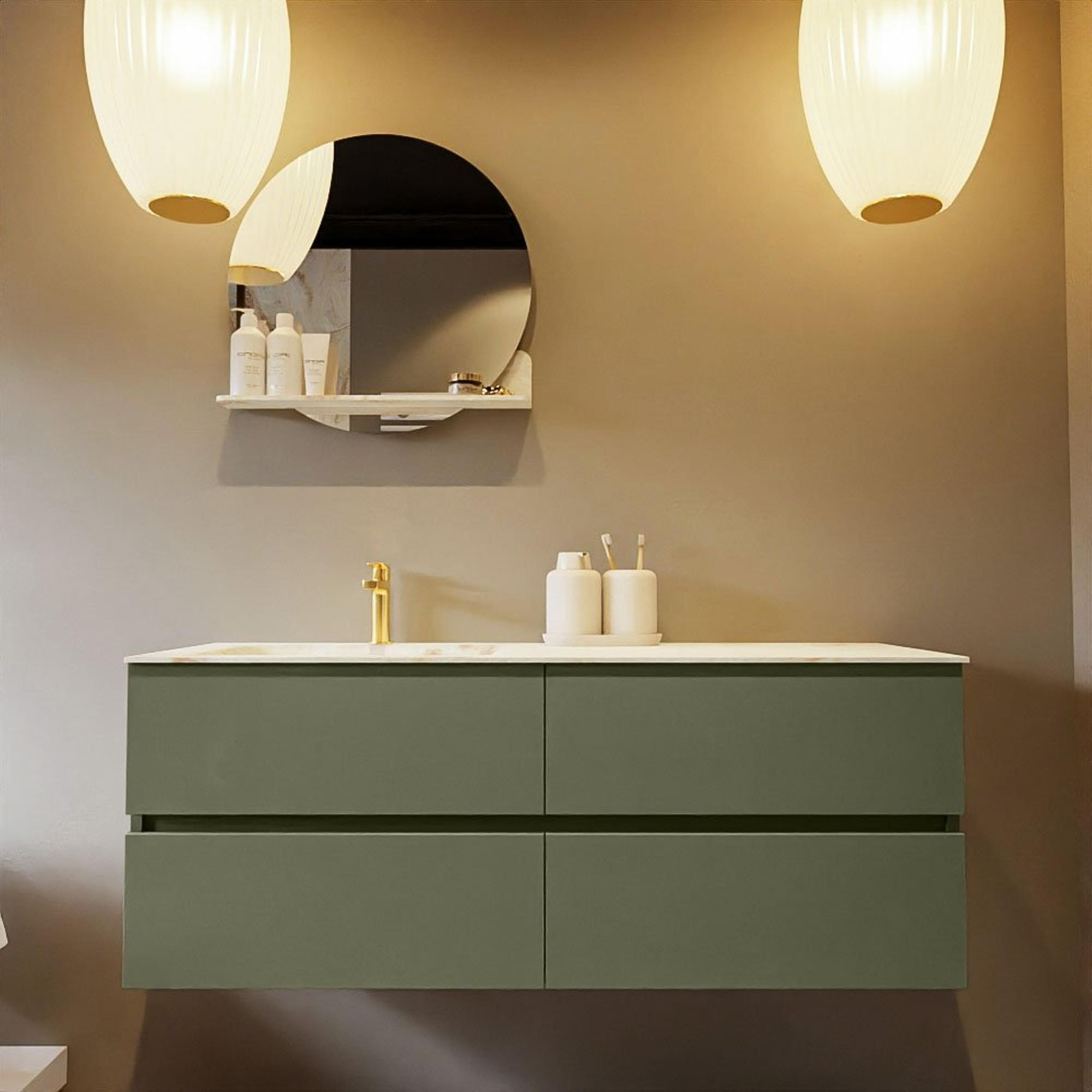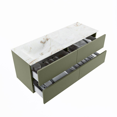 MONDIAZ VICA-DLUX Ensemble meuble de salle de bains - 130cm - sous-meuble army - 4 tiroirs - lavabo encastré cloud à gauche - 1 trou de robinet - version hauteur 60cm - frape
