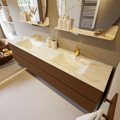 MONDIAZ VICA-DLUX Ensemble meuble de salle de bains - 200cm - meuble sous-vasque rust - 4 tiroirs - lavabo encastré cloud double - 2 trous de robinet - version haute 60cm - frape