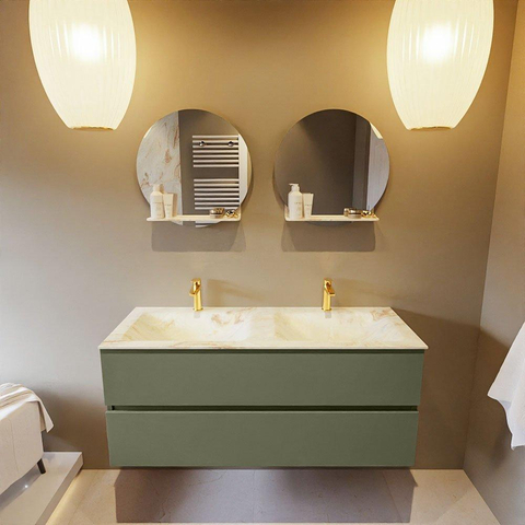 MONDIAZ VICA-DLUX Ensemble meuble de salle de bains - 120cm - meuble sous-vasque army - 2 tiroirs - lavabo encastré cloud double - 2 trous de robinet - version haute 60cm - frape
