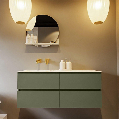 MONDIAZ VICA-DLUX Ensemble meuble de salle de bains - 120cm - meuble bas army - 4 tiroirs - lavabo encastré cloud gauche - sans trous de robinet - version haute 60cm - frape