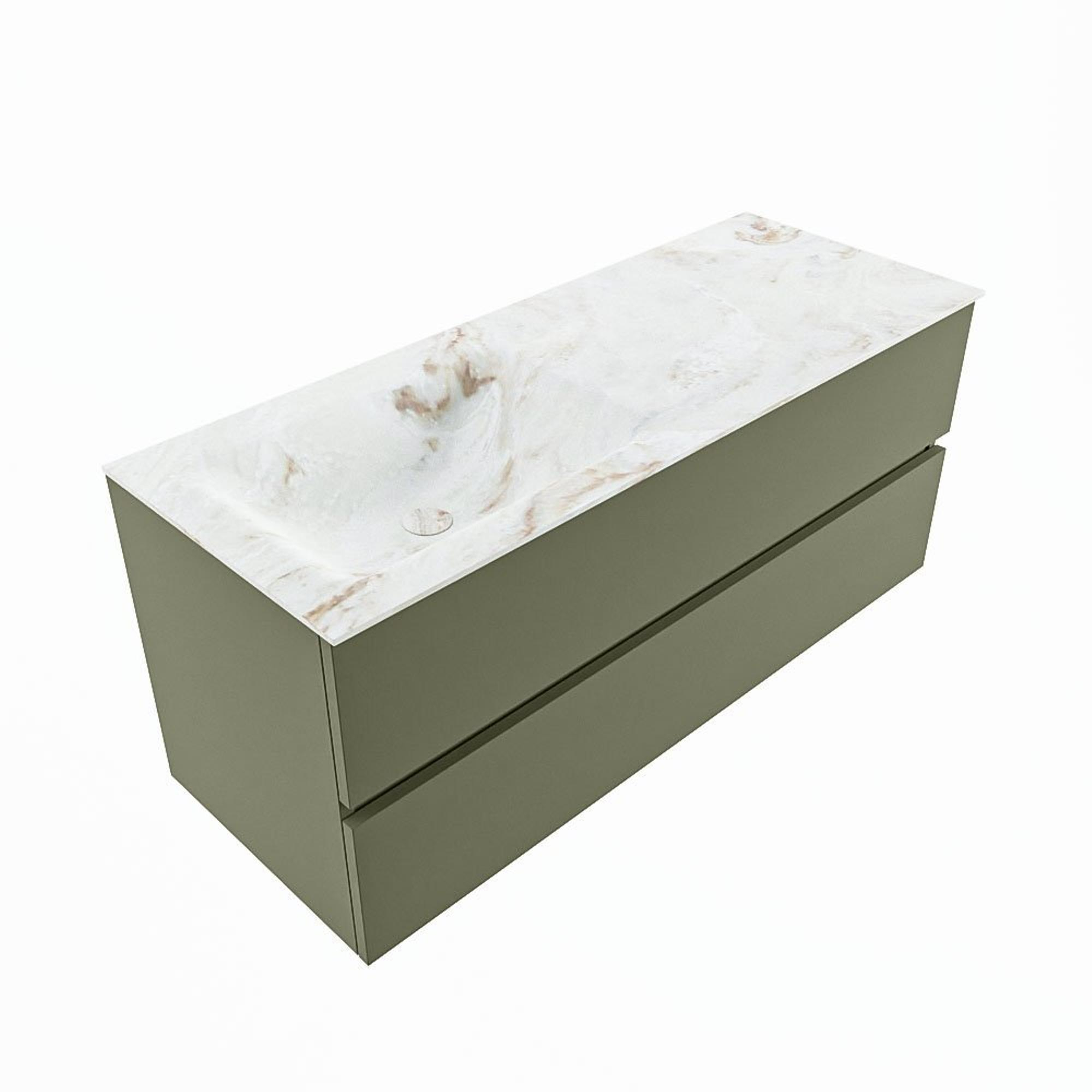 MONDIAZ VICA-DLUX Ensemble meuble de salle de bains - 120cm - meuble bas army - 2 tiroirs - lavabo encastré cloud gauche - sans trous de robinet - version haute 60cm - frape