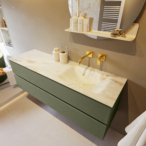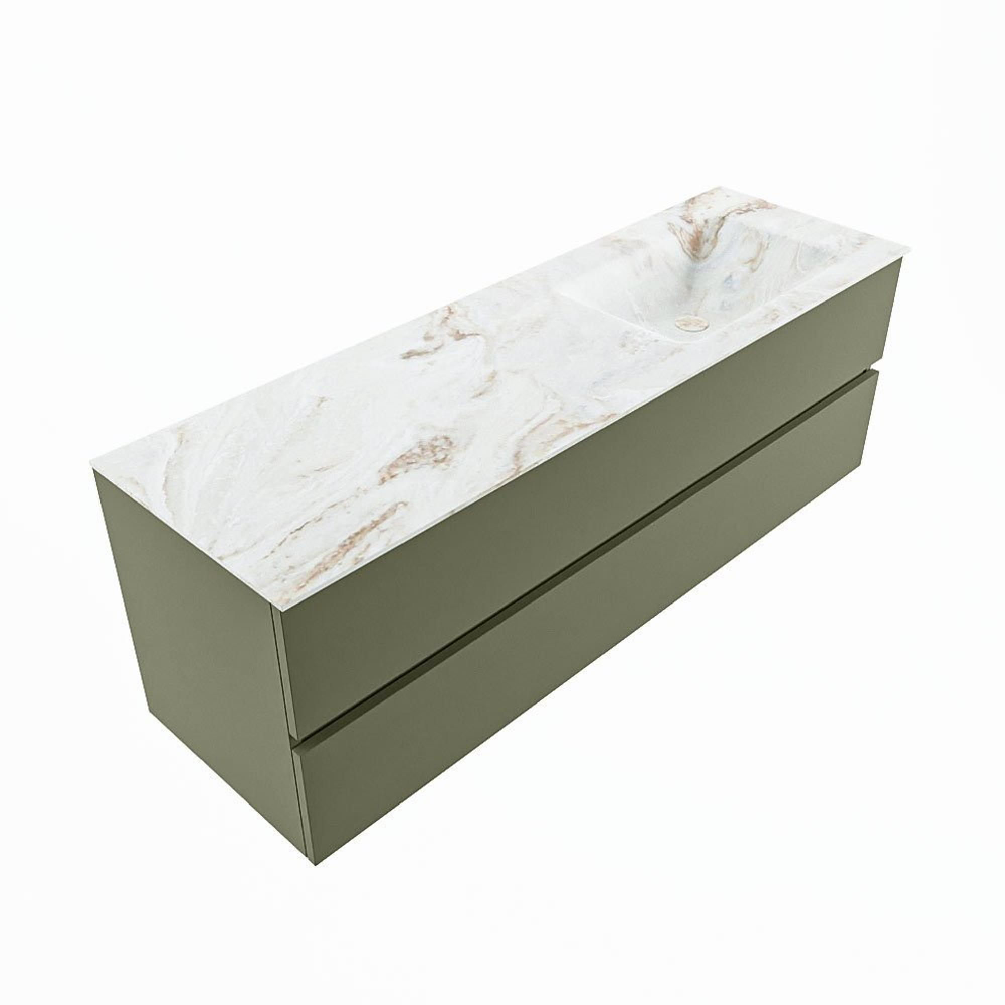 MONDIAZ VICA-DLUX Ensemble meuble de salle de bains - 150cm - meuble bas army - 2 tiroirs - lavabo encastré cloud à droite - sans trous de robinet - version haute 60cm - frape