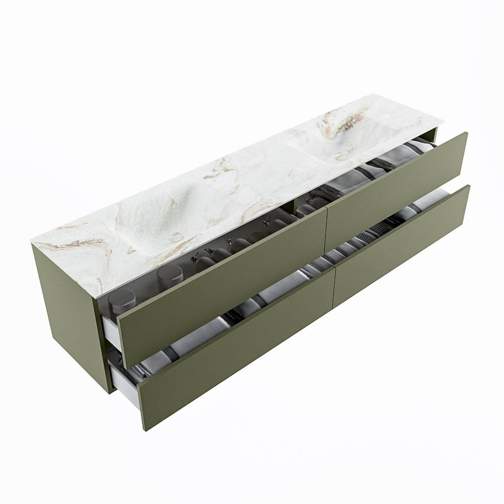 MONDIAZ VICA-DLUX Ensemble meuble de salle de bains - 200cm - meuble bas army - 4 tiroirs - lavabo encastré cloud double - sans trous de robinet - version haute 60cm - frape