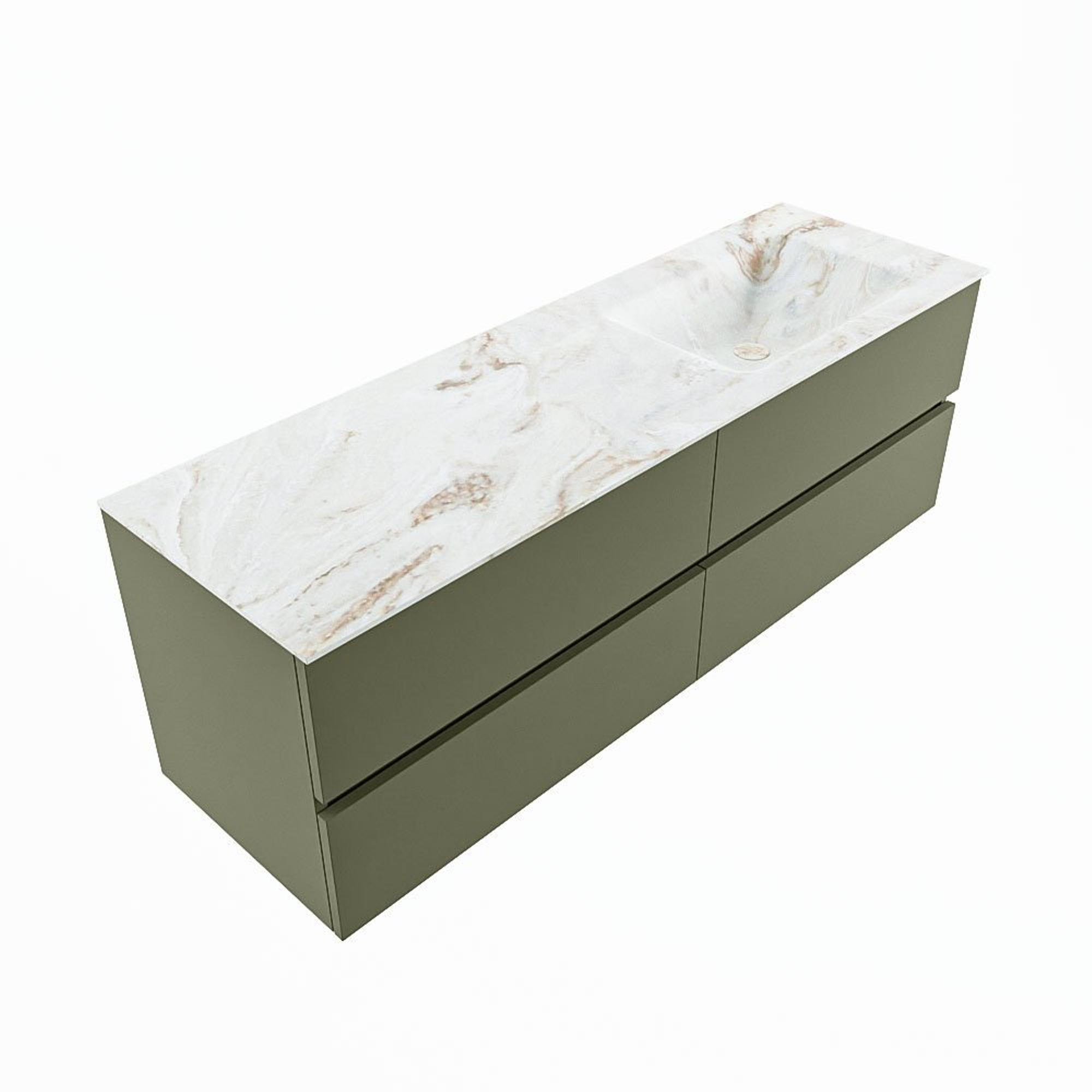 MONDIAZ VICA-DLUX Ensemble meuble de salle de bains - 150cm - sous-meuble army - 4 tiroirs - lavabo encastré cloud à droite - 1 trou de robinet - version haute 60cm - frape