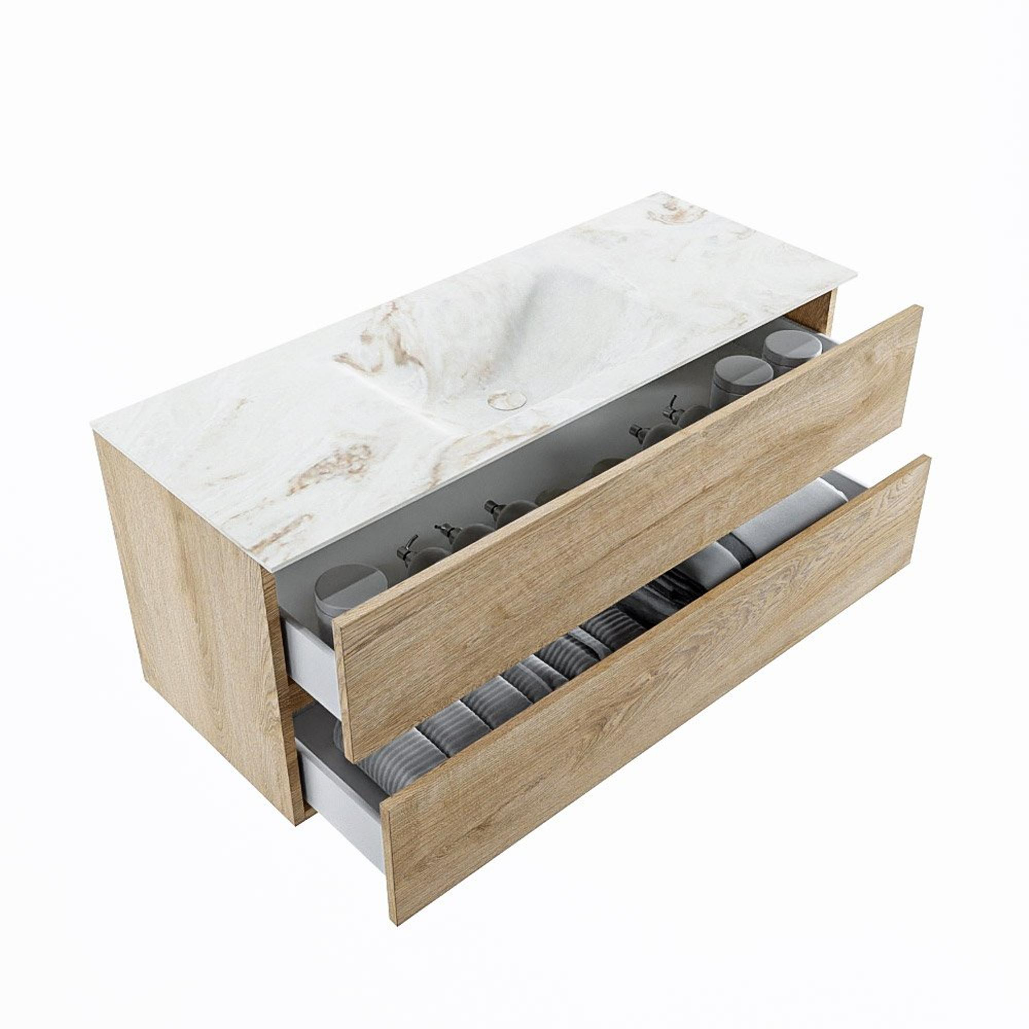 MONDIAZ VICA-DLUX Ensemble meuble de salle de bains - 120cm - meuble sous-vasque chêne blanchi - 2 tiroirs - lavabo encastré cloud central - sans trous de robinet - version hauteur 60cm - frape