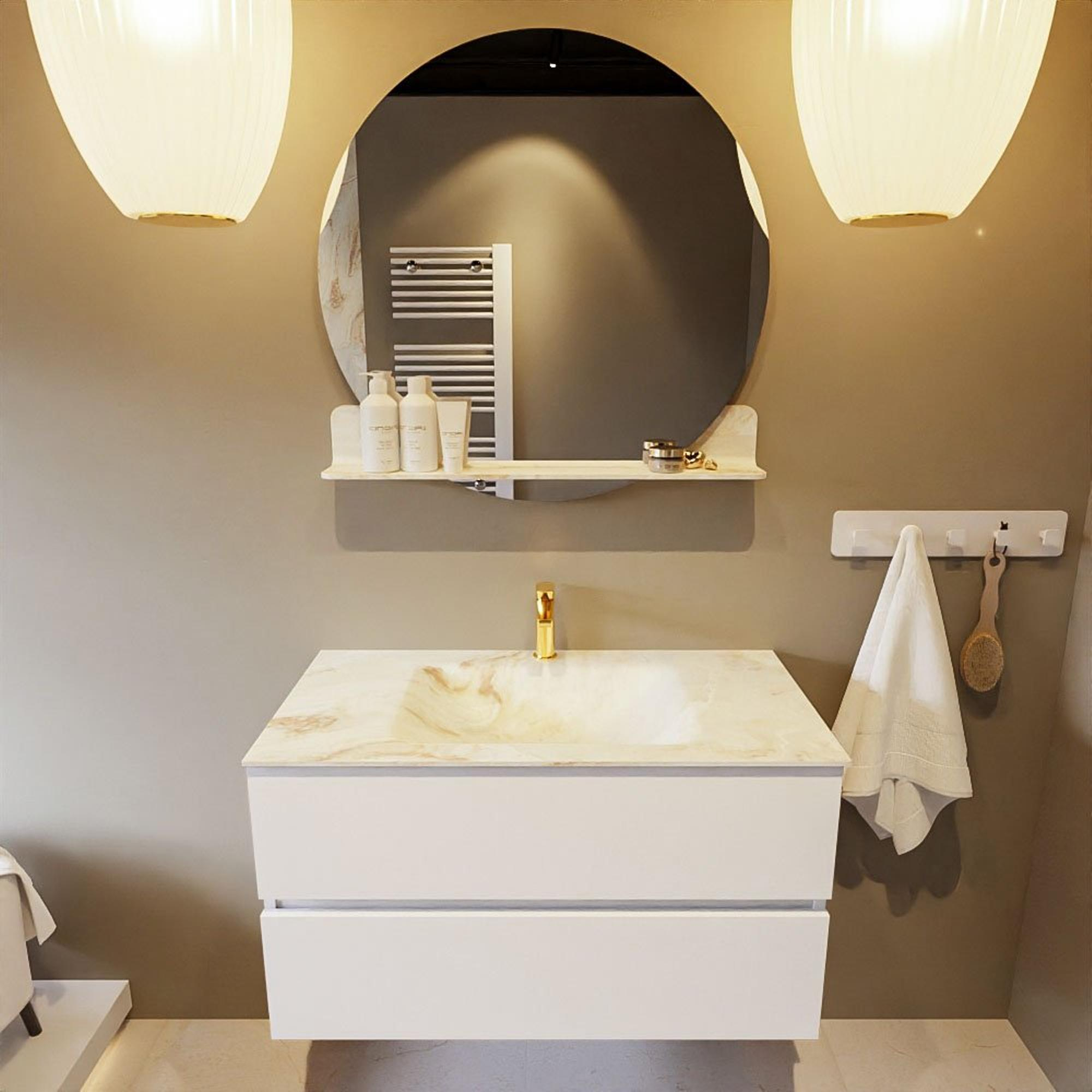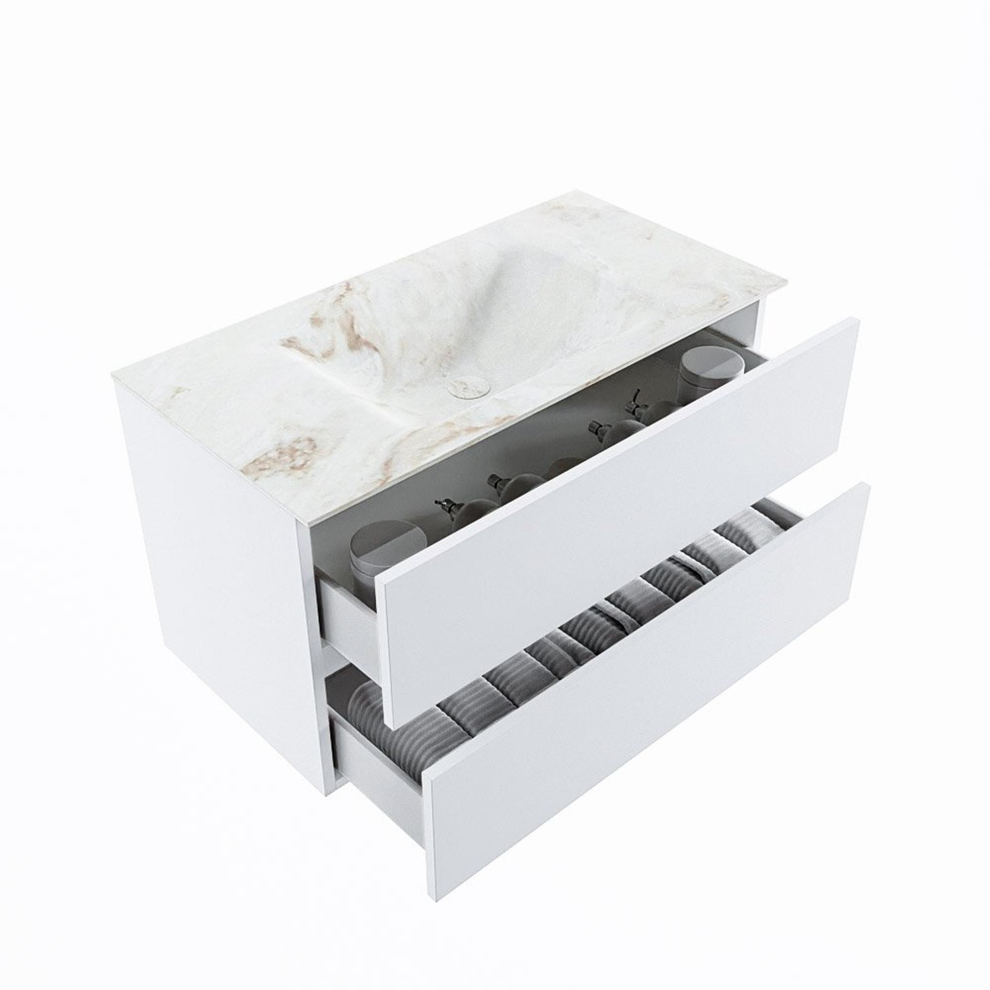 Mondiaz VICA-DLUX Ensemble de meuble de salle de bain - 90cm - meuble sous-vasque talc - 2 tiroirs - lavabo encastrée cloud milieu - 1 trou de robinet - version haute de 60cm - frape