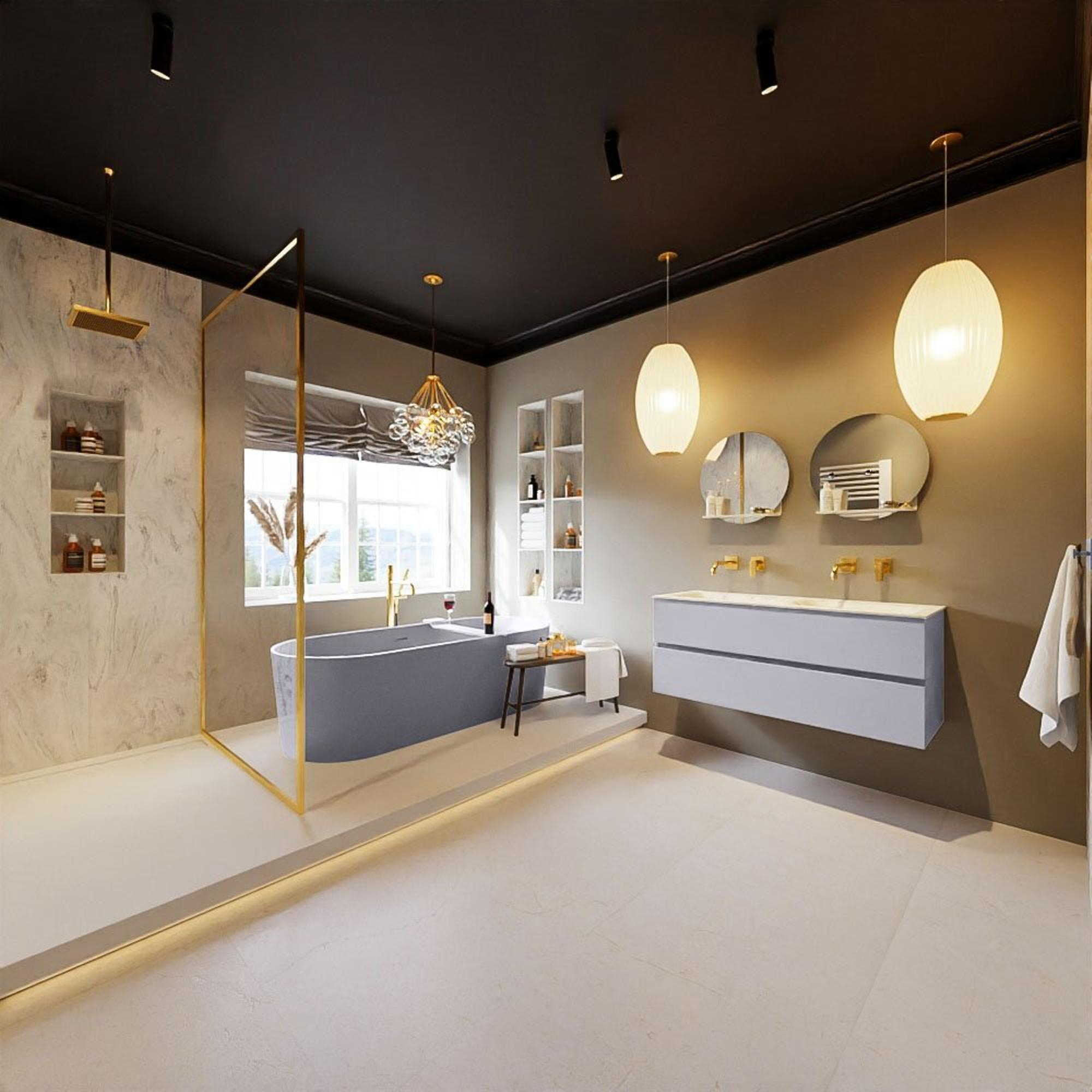 - Le meuble ne doit pas être placé directement à côté ou en face d'une douche avec rideau de douche et/ou sans paroi de douche.