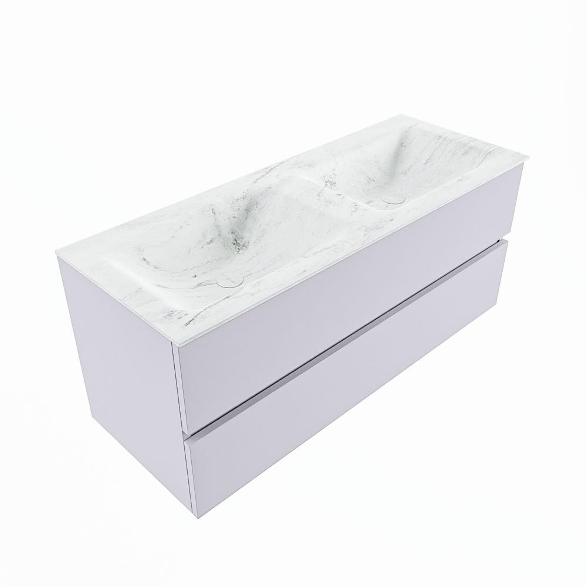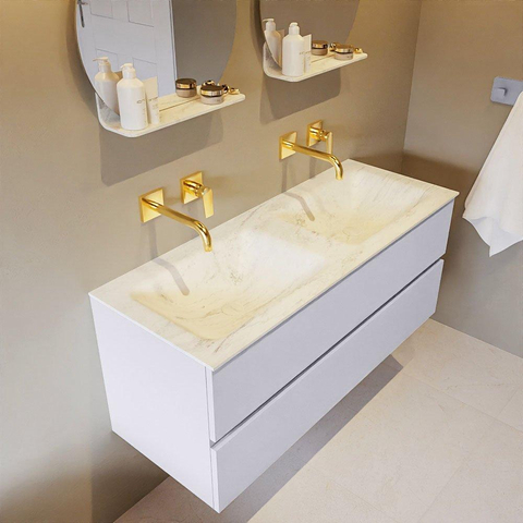 MONDIAZ VICA-DLUX Ensemble meuble de salle de bains - 120cm - meuble bas cale- 2 tiroirs - lavabo encastré cloud double - sans trous de robinet - version haute 60cm - opalo